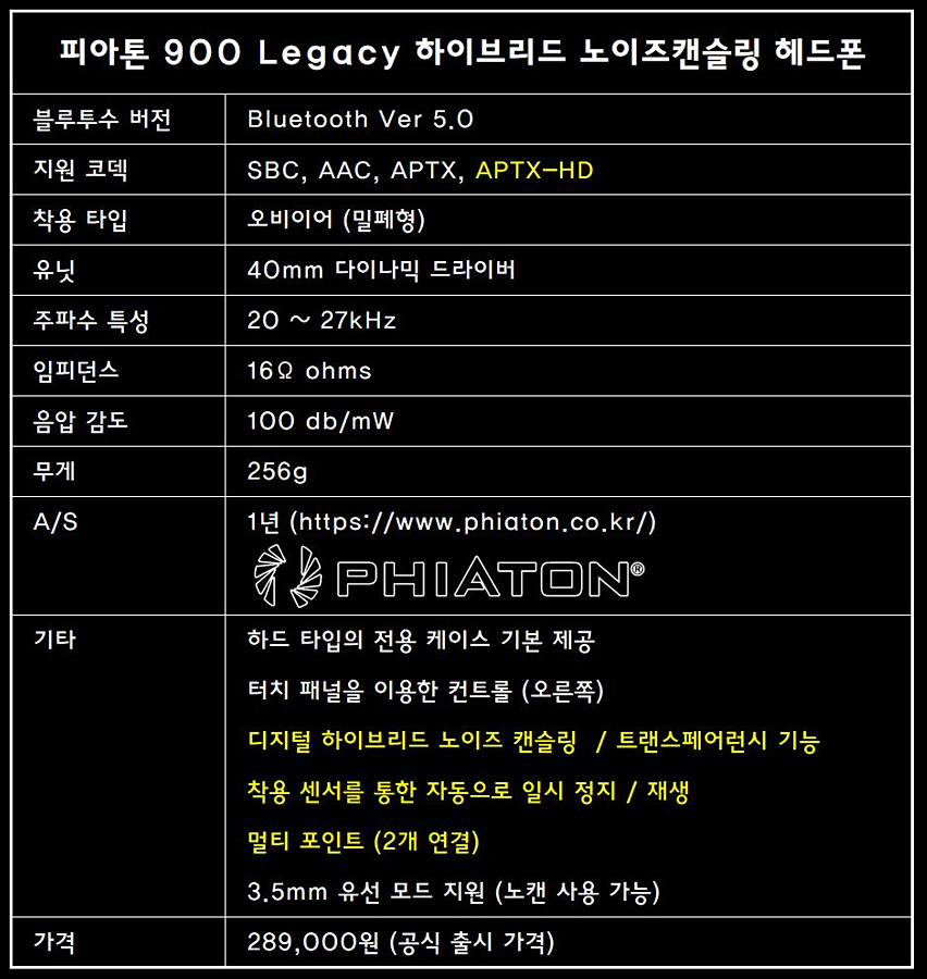■ 피아톤 900 LEGACY 블루투스 헤드폰 정리