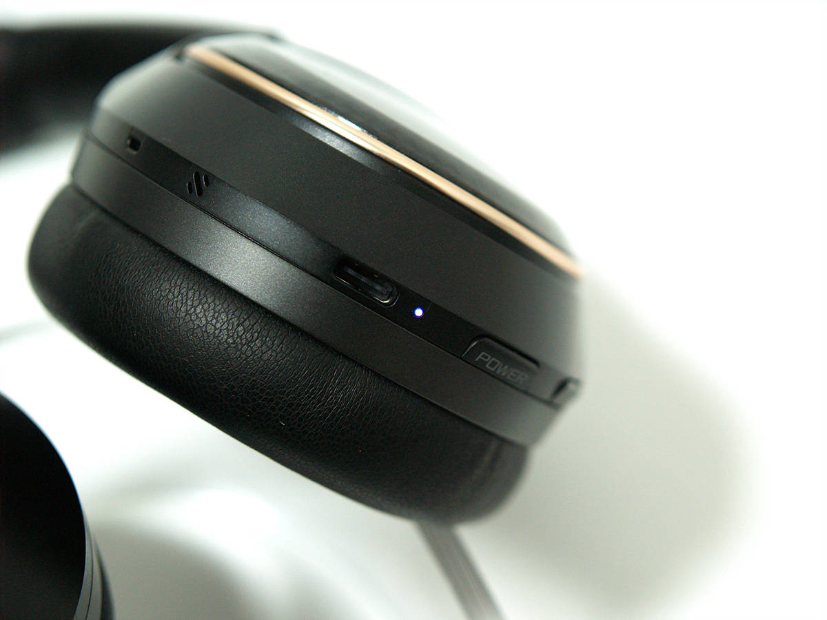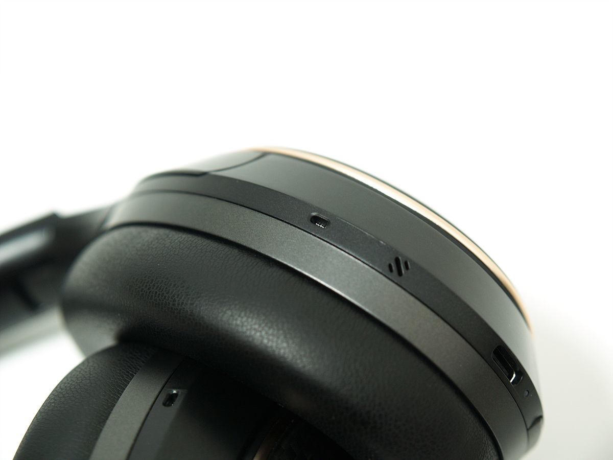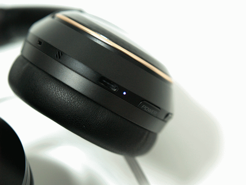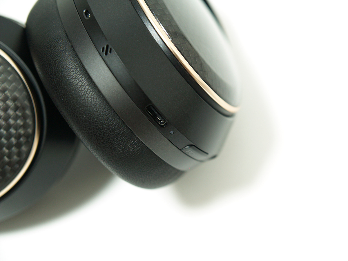 왼쪽에는 Type-C 충전 포트., 상태표시 LED, 전원 버튼, 노이즈 캔슬링 전환 버튼이 있습니다. 900 LEGACY 헤드폰은 외부의 소리를 차단해주는 노이즈 캔슬링과 외부의 소리를 그대로 들려주는 트랜스패어런시 기능을 가지고 있습니다. NC 버튼을 누르게 되면 노이즈캔슬링 <-> 트랜스패어런시 모드로 변환이 되지만 다른 제품과는 조금 다르게 이 기능을 모두 끌 수는 없습니다. (스위치처럼 두개 중 한개는 반드시 활성화 상태가 됩니다.) 저는 이 부분이 불편하지는 않았지만 혹시나 해당 기능을 모두 끄고 사용하려는 분들이라면 꼭 참고하시기 바랍니다.
