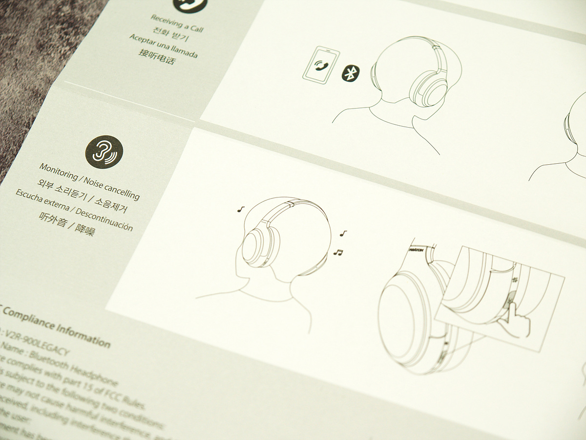설명서는 한글을 포함한 다국어 버전으로 되어있으며 글보다는 그림 위주로 헤드폰의 사용법을 안내하고 있습니다. 헤드폰의 디자인도 그렇지만 이런 부분도 소니 제품과 상당히 비슷하더군요.