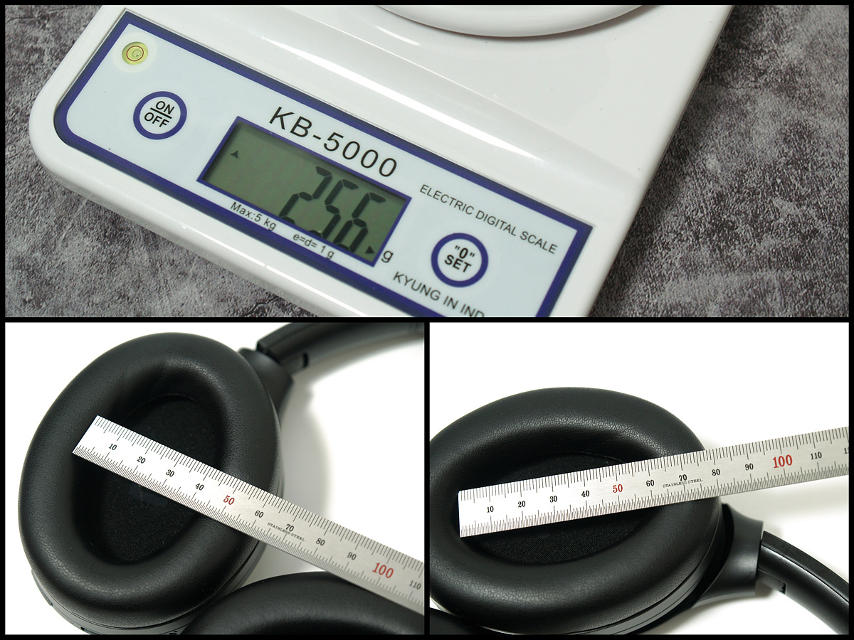 배터리가 들어가있는 무선 제품임을 생각한다면 무게는 상당히 가벼운 편이였습니다. 이어패드의 안쪽은 가로 43mm / 세로 63mm정도로 적당한 수준이였습니다. 헤드폰의 착용감에서 가장 중요한 부분인 좌우 장력 역시 그리 강한편이 아니라 저처럼 머리가 큰 분들이라도 압박감이 심하게 느껴지지는 않을거라 생각합니다. 이런 착용감은 가벼운 무게도 큰게 작용을 했을거라 생각합니다.