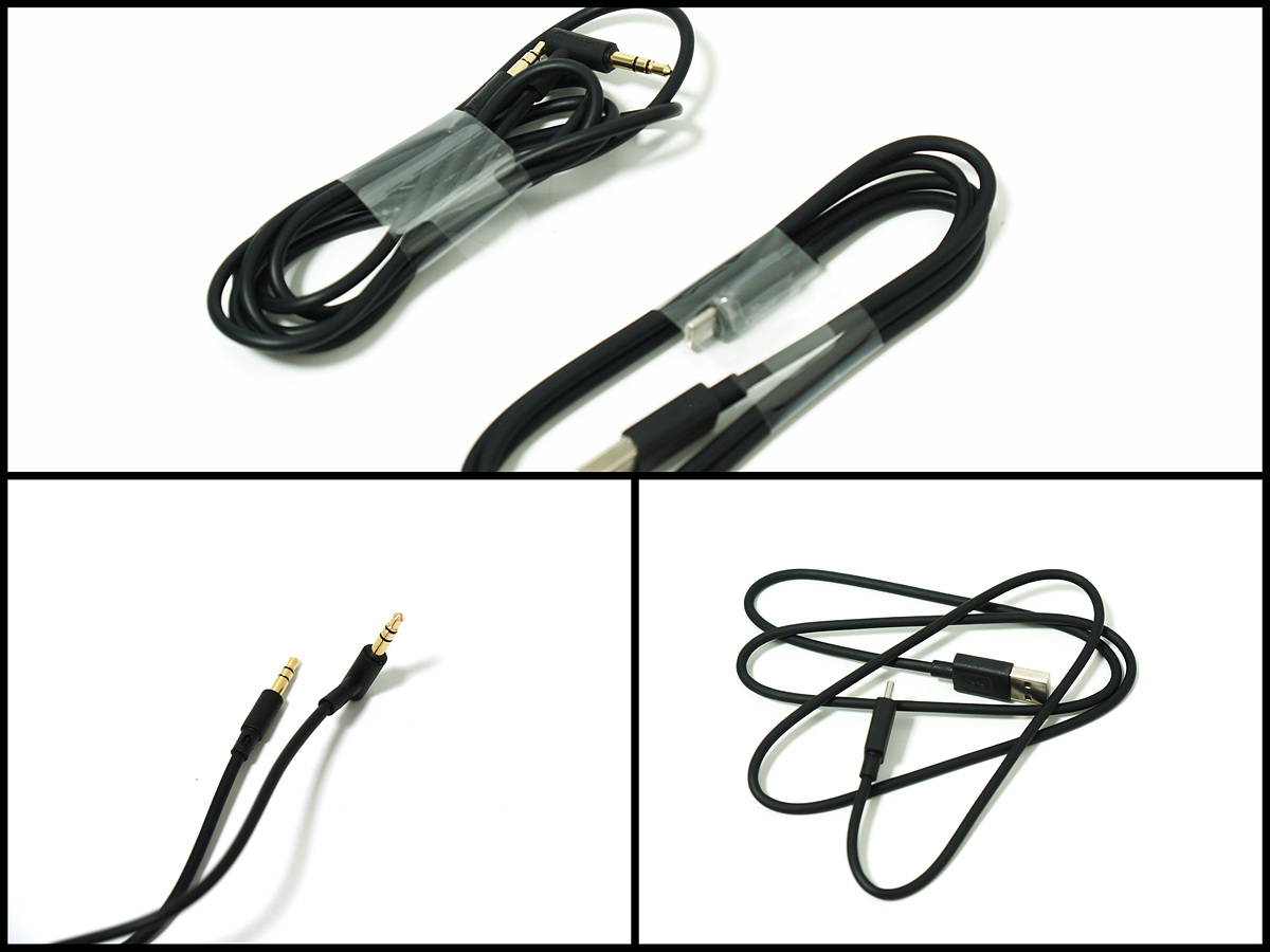 케이스에는 헤드폰과 케이블 (충전, 3.5mm)이 포함되어 있습니다.