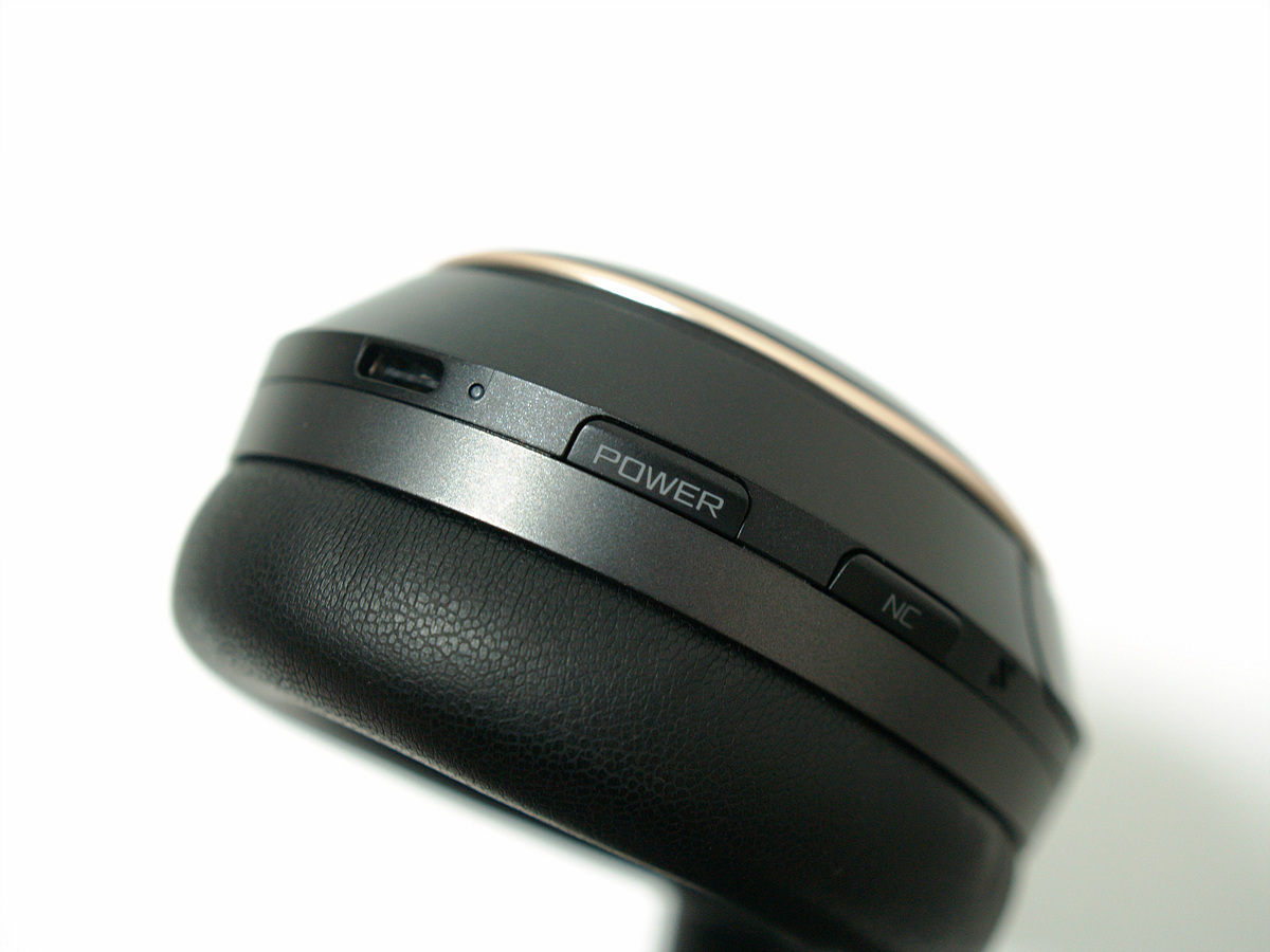 왼쪽에는 Type-C 충전 포트., 상태표시 LED, 전원 버튼, 노이즈 캔슬링 전환 버튼이 있습니다. 900 LEGACY 헤드폰은 외부의 소리를 차단해주는 노이즈 캔슬링과 외부의 소리를 그대로 들려주는 트랜스패어런시 기능을 가지고 있습니다. NC 버튼을 누르게 되면 노이즈캔슬링 <-> 트랜스패어런시 모드로 변환이 되지만 다른 제품과는 조금 다르게 이 기능을 모두 끌 수는 없습니다. (스위치처럼 두개 중 한개는 반드시 활성화 상태가 됩니다.) 저는 이 부분이 불편하지는 않았지만 혹시나 해당 기능을 모두 끄고 사용하려는 분들이라면 꼭 참고하시기 바랍니다.