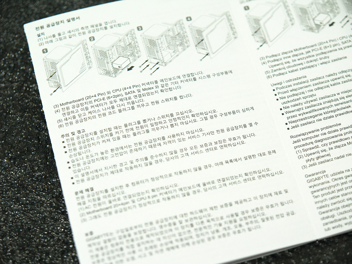 설명서는 한글이 포함되어 있습니다. (파워 설명서는 별다른 내용이 있지는 않습니다.)