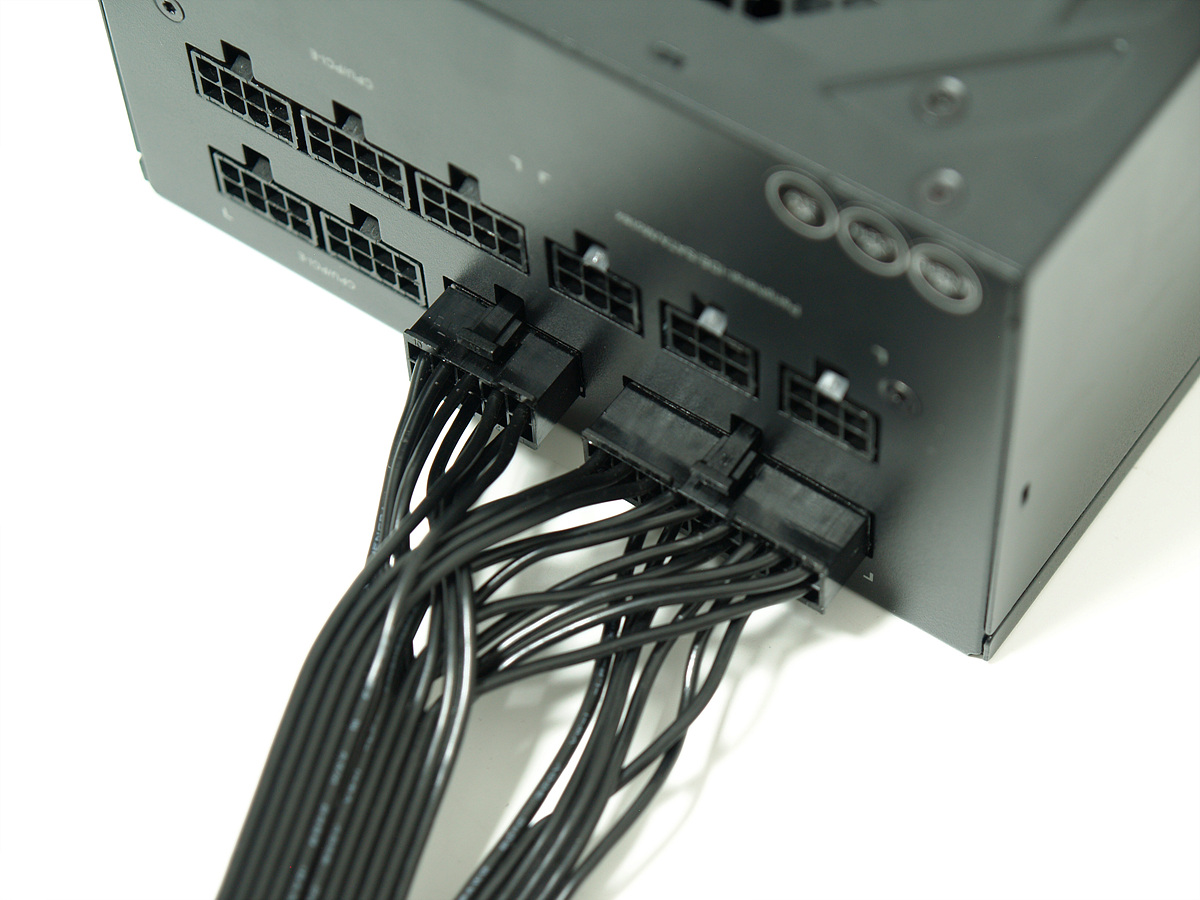 PC에 연결되는 장치에 맞게 필요한 케이블들만 연결해서 사용할 수 있습니다. 테스트 시스템은 라이젠 3600X (PBO) + RTX 3070 (8+8핀)이고 CPU 보조전원은 8핀 한개만 사용하였습니다.