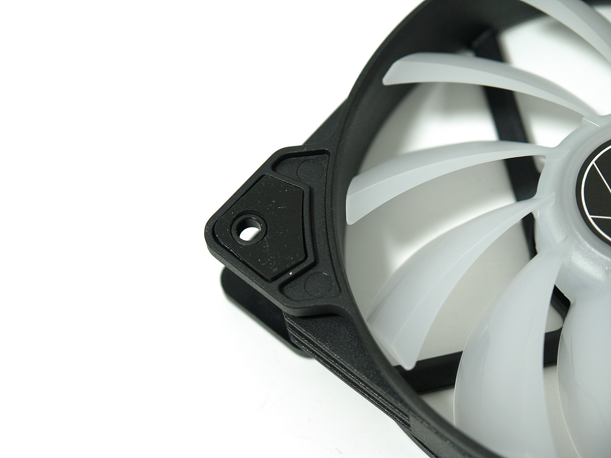 쿨러는 LED 효과를 위해 반투명한 재질로 되어있으며 11개의 블레이드(날개)를 가지고 있으며 장착시 진동을 최소화하기 위하여 고무로 마감이 되어있습니다. 쿨링 팬은 하이드로 베어링 (Hydro Bearing)이 사용 되었습니다.