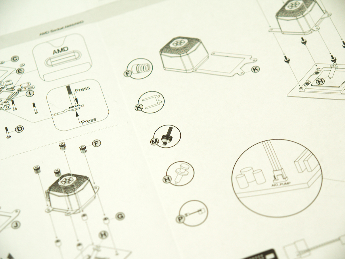 조립 설명서의 경우 각각의 단계별로 표시가 되어있지 않고 하나의 큰 그림으로만 설명을 하고 있습니다. Intel / AMD 시스템별로 따로 되어있기는 하지만 이런 설명서가 좀 부족하다는 생각이 들더군요. 제 경우는 기존에 수랭쿨러를 몇번 사용해본 경험이 있어서 어느정도는 파악할 수 있었지만 처음 조립을 하는 분들에게는 다소 생소하거나 헷갈릴 수 있는 부분들이 좀 있었습니다. 특히나 쿨러의 RGB 연결은 다른 제품들과 조금 달라서 이런 부분들을 조금 더 자세하게 설명했으면 좋았을텐데 아쉽게 느껴졌습니다.