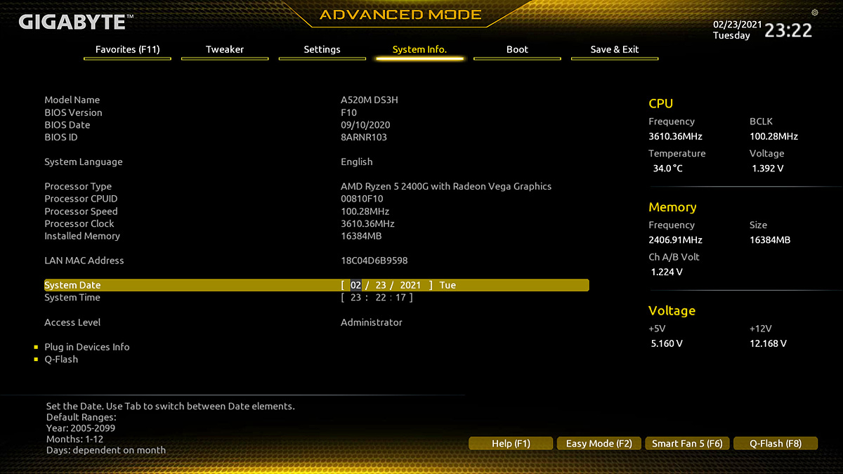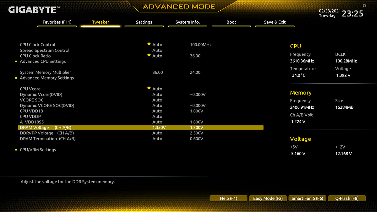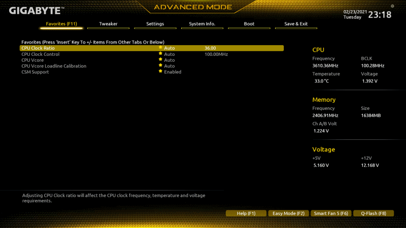 A520은 B550, X570처럼 CPU의 오버클럭을 지원하지 않지만 메모리의 오버클럭이나 세부 타이밍 그리고 전압을 변경할 수 있습니다.