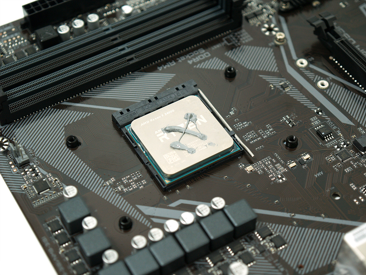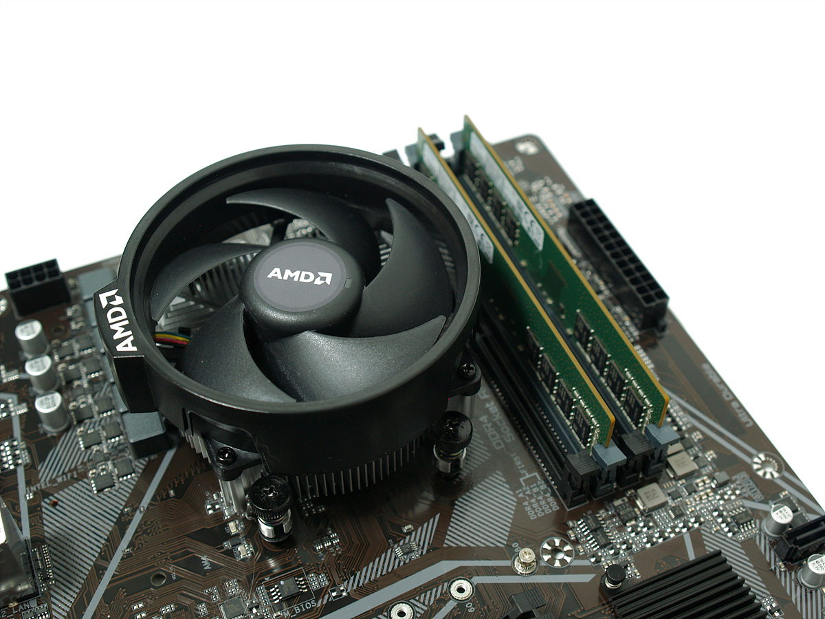 메인보드 테스트에 사용할 부품들입니다. (AMD 2400G, 삼성 8GB 메모리 두개, M.2 SSD)