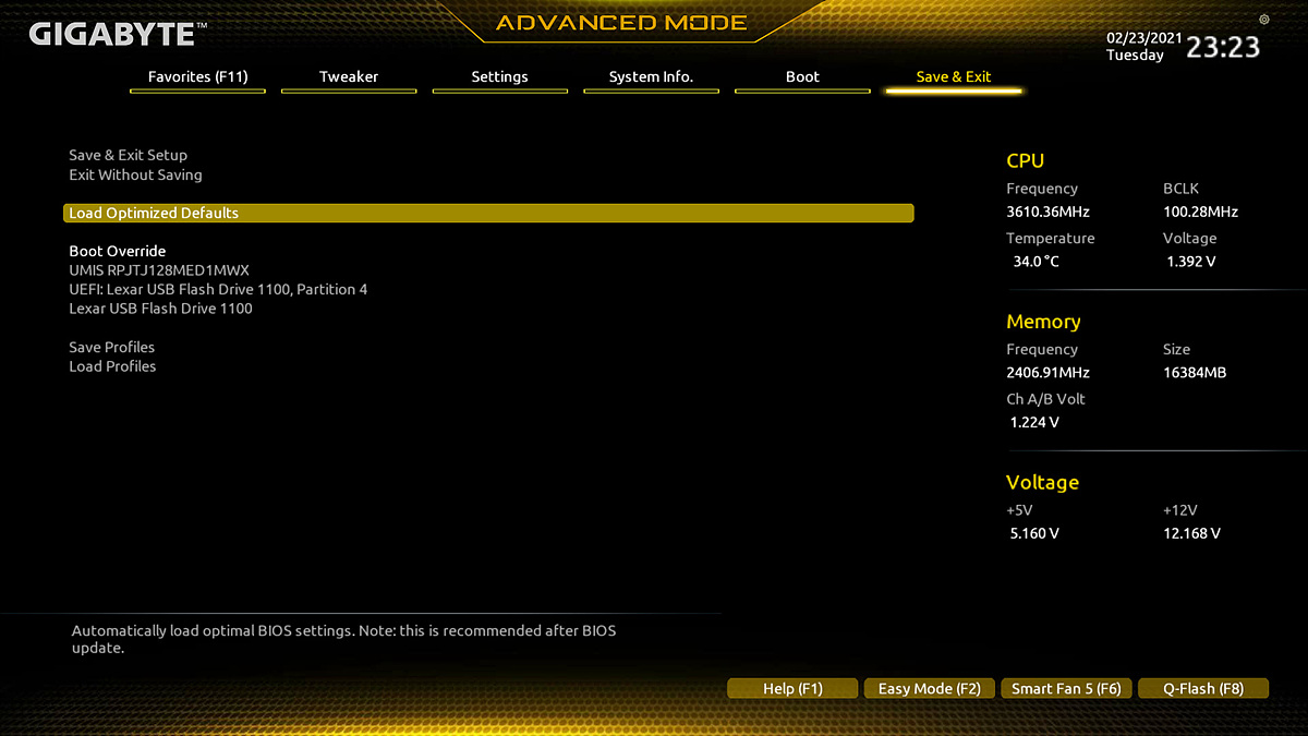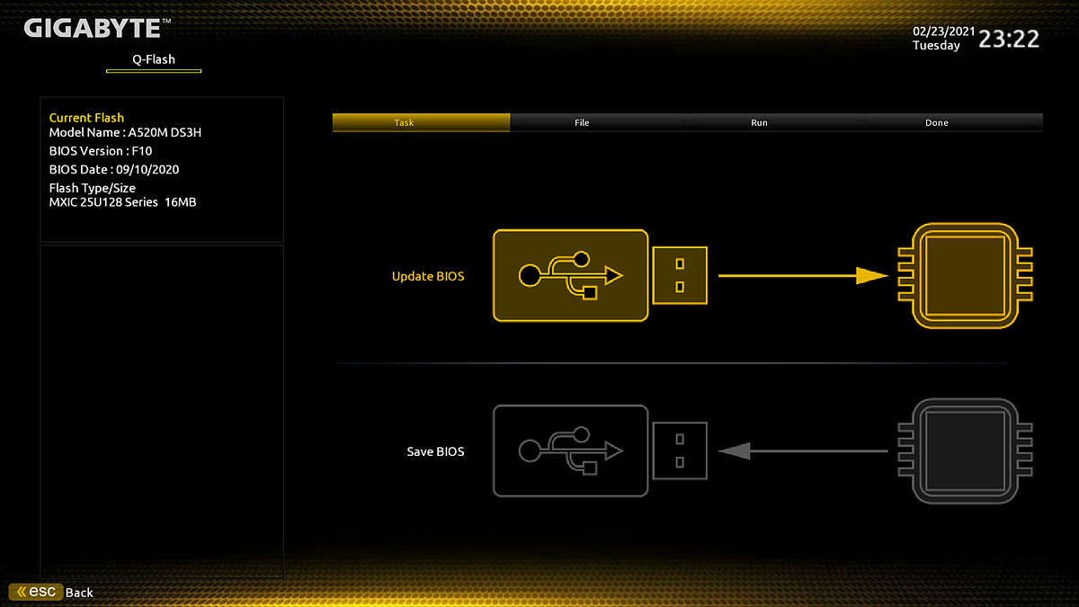 Q-Flash 메뉴에서는 바이오스의 펌웨어 업데이트를 진행할 수 있습니다.
