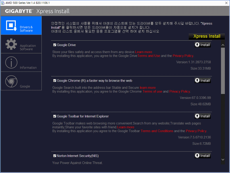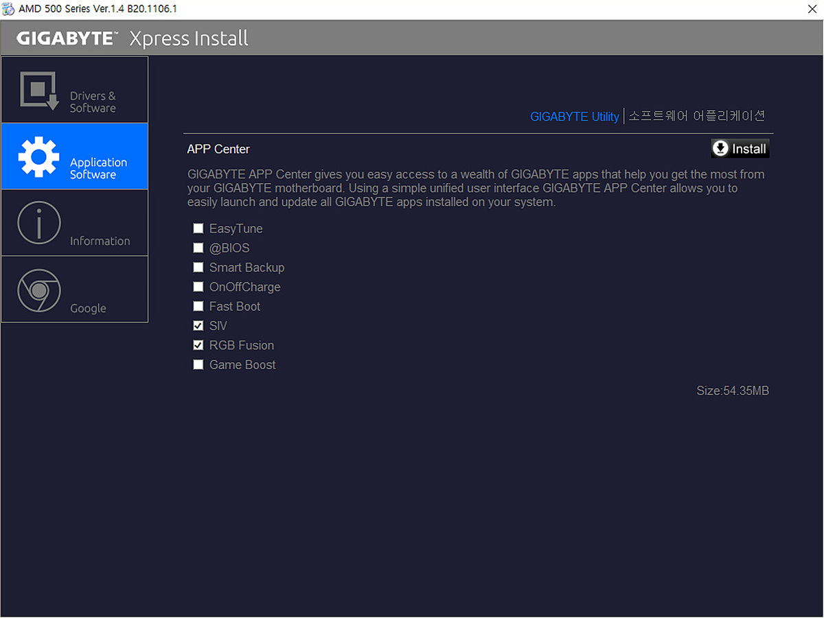APP Center에 있는 프로그램은 필수는 아니지만 SIV / RGB 퓨전 두개정도는 설치해주는 편이 좋습니다.