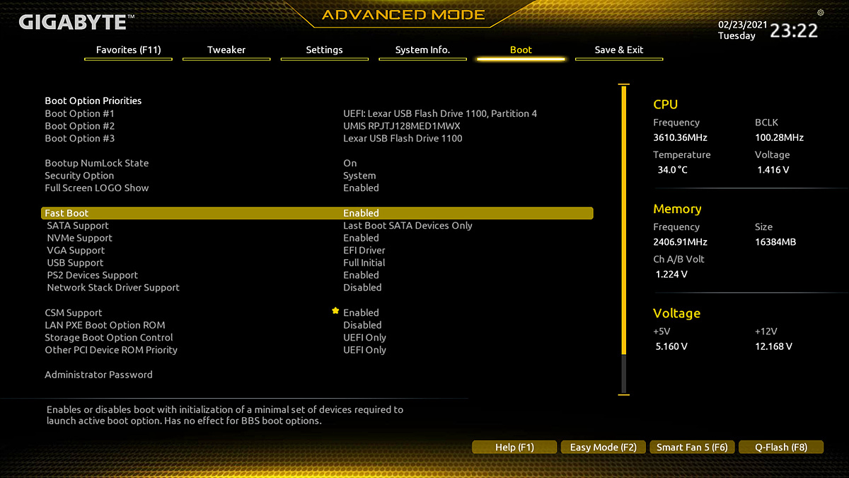 A520 보드에서는 메모리 오버클럭을 제외한다면 별다르게 세팅하거나 변경할 부분은 거의 없습니다.
