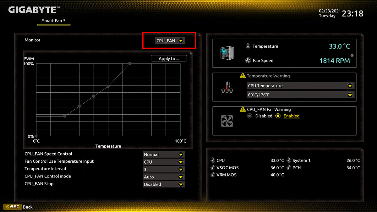 F6키를 누르면 온도와 팬 설정을 할 수 있습니다. (Smart FAN 5)