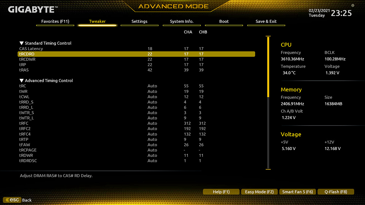 A520은 B550, X570처럼 CPU의 오버클럭을 지원하지 않지만 메모리의 오버클럭이나 세부 타이밍 그리고 전압을 변경할 수 있습니다.