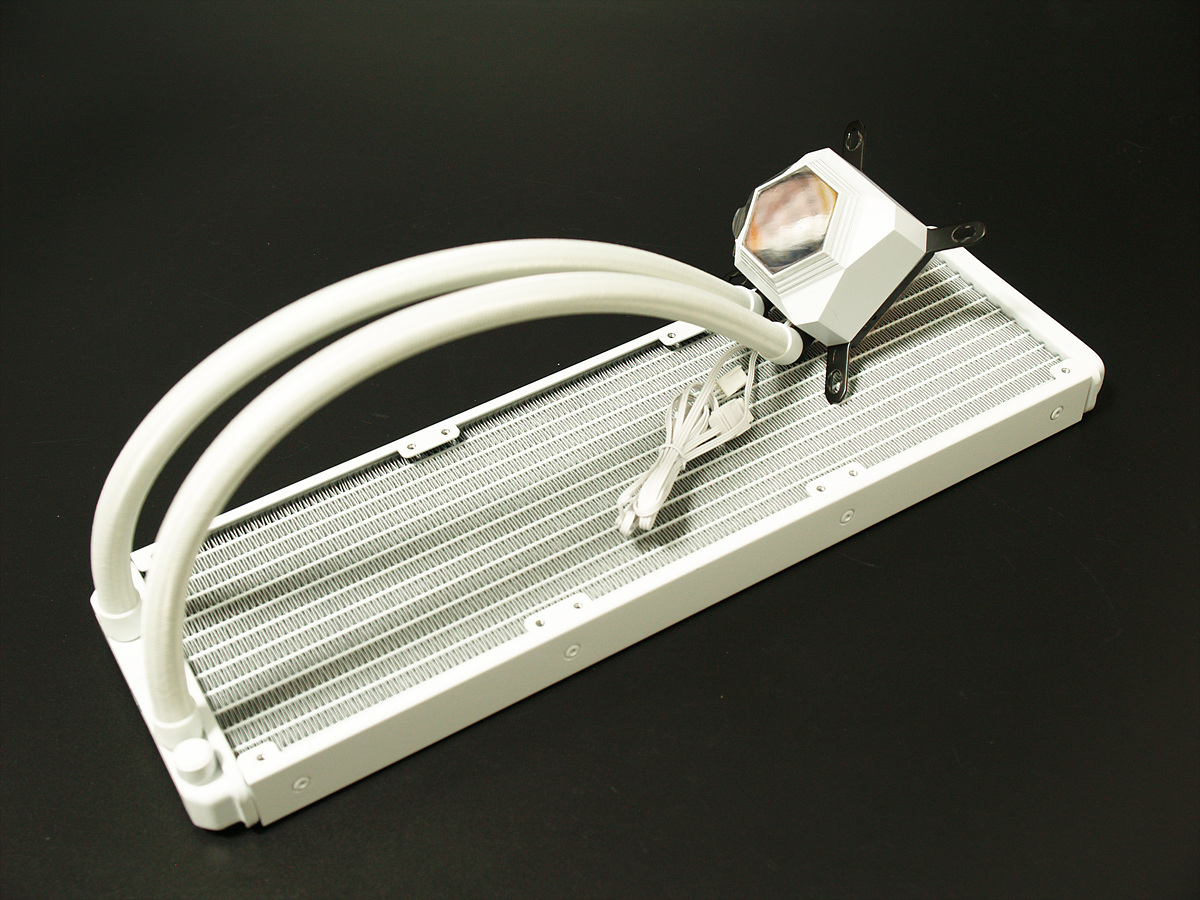 화이트 컨셉으로 시스템을 구성하려는 분들이라면 정말 반가울만한 구성입니다. 설치에 필요한 액세서리(브라켓, 나사류)만 제외한다면 모든 구성품이 화이트로 깔맞춤이 되어있습니다. 예전에 비해 화이트 컨셉의 제품이 많아지기는 했지만 이렇게 모든 구성품이 화이트로 되어있는 수랭쿨러는 아직까지는 그리 많지 않습니다.