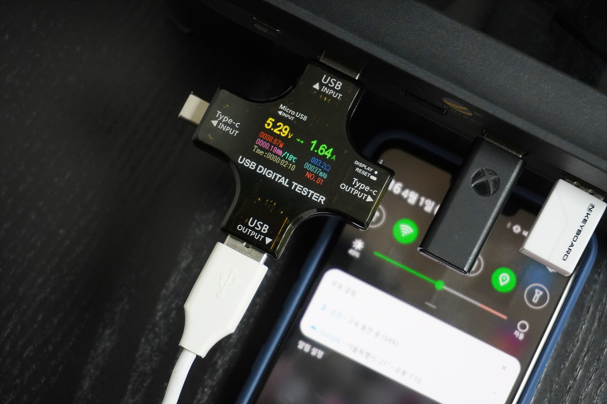 키보드/마우스용 무선 수신기, XBOX 무선 수신기등을 편리하게 사용할 수 있습니다. 개인적으로 오른쪽보다는 이렇게 왼쪽으로 사용하는게 걸리적거리지 않아서 더 좋았습니다.