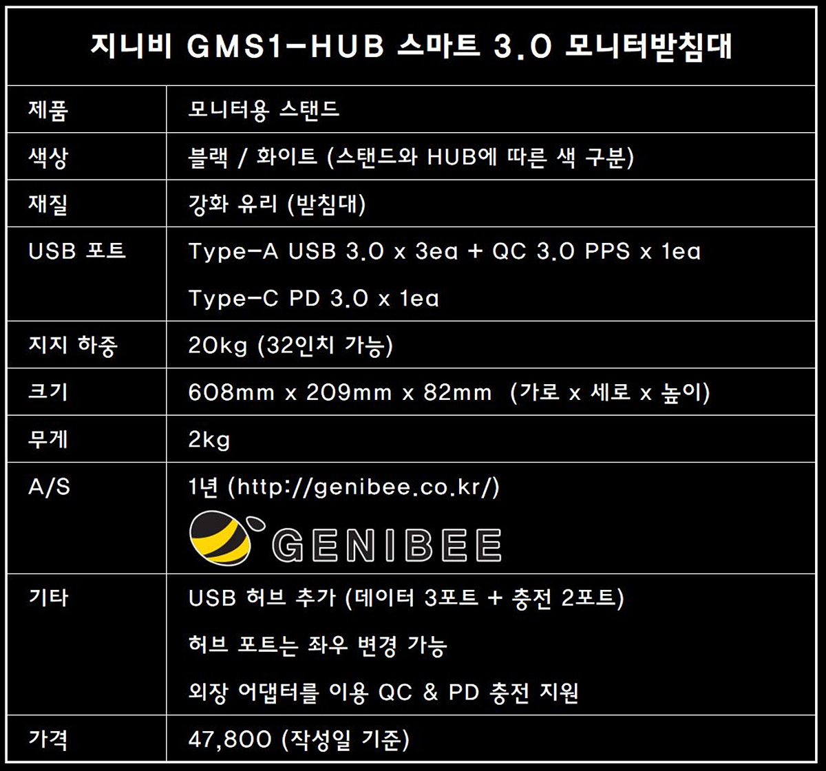 ■ 지니비 GMS1-HUB 스마트 3.0 모니터 받침대
