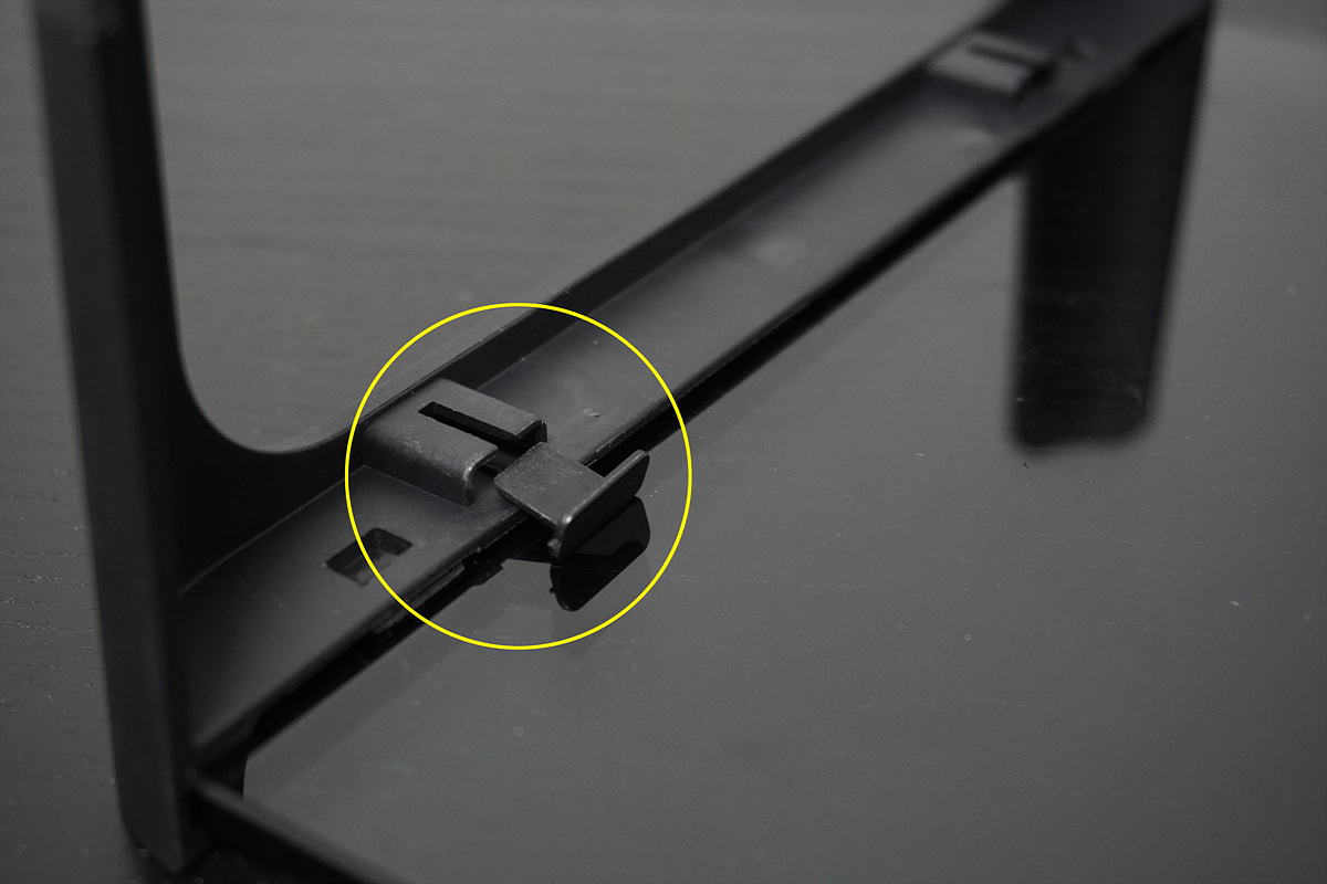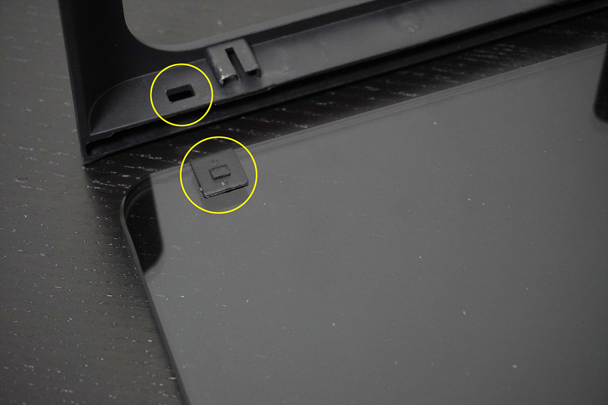 조립을 하고 나니 혹시나 나중에 해체할때는 어떻게 빼지? 라는 걱정이 들었는데 박스에 있는 설명서를 보니 따로 설명이 되어있었습니다. 양쪽 지지대 부분에 있는 커버(동그라미)를 이용해서 강화유리를 쉽게 분리할 수 있습니다.