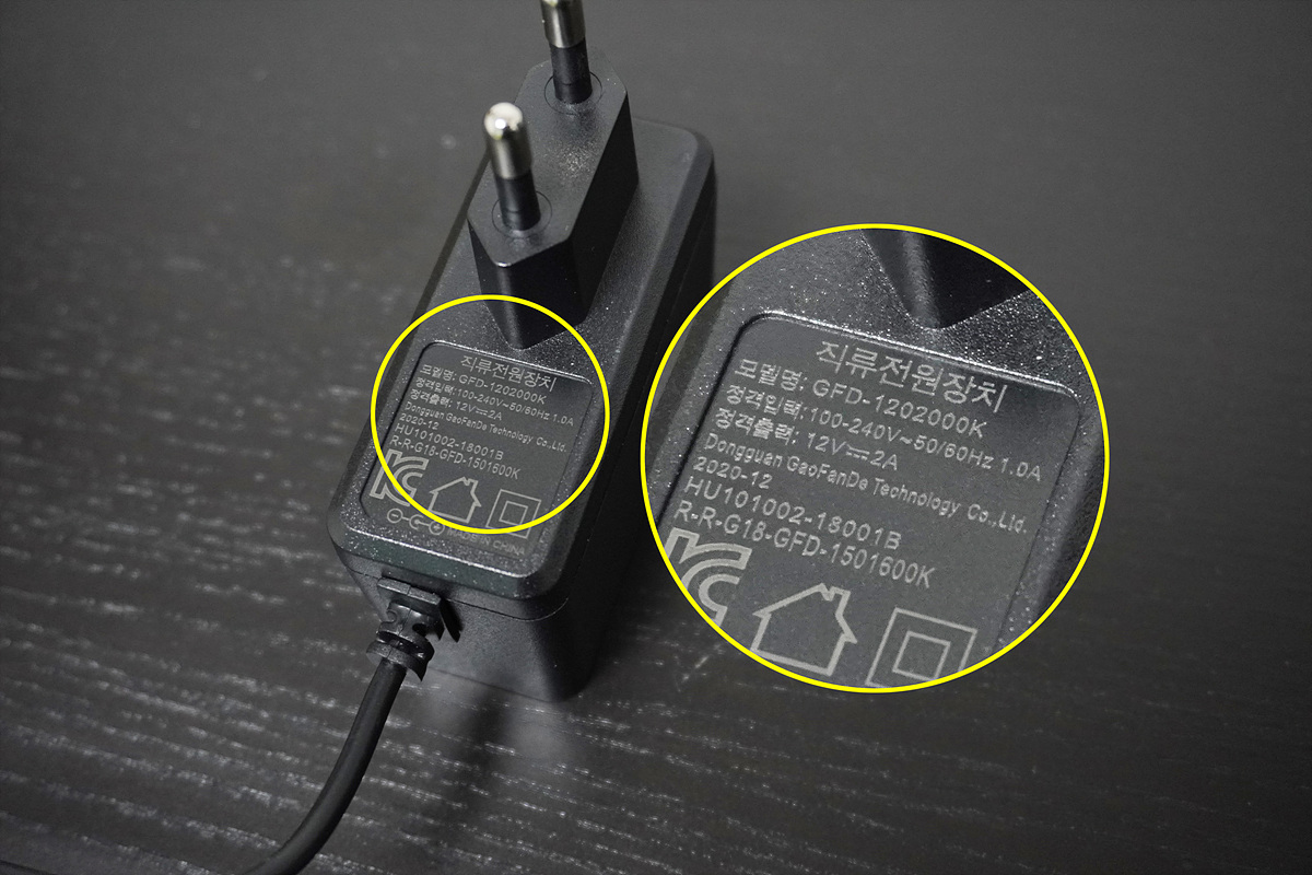 외장 어댑터는 12V / 2A의 출력을 가지고 있습니다.