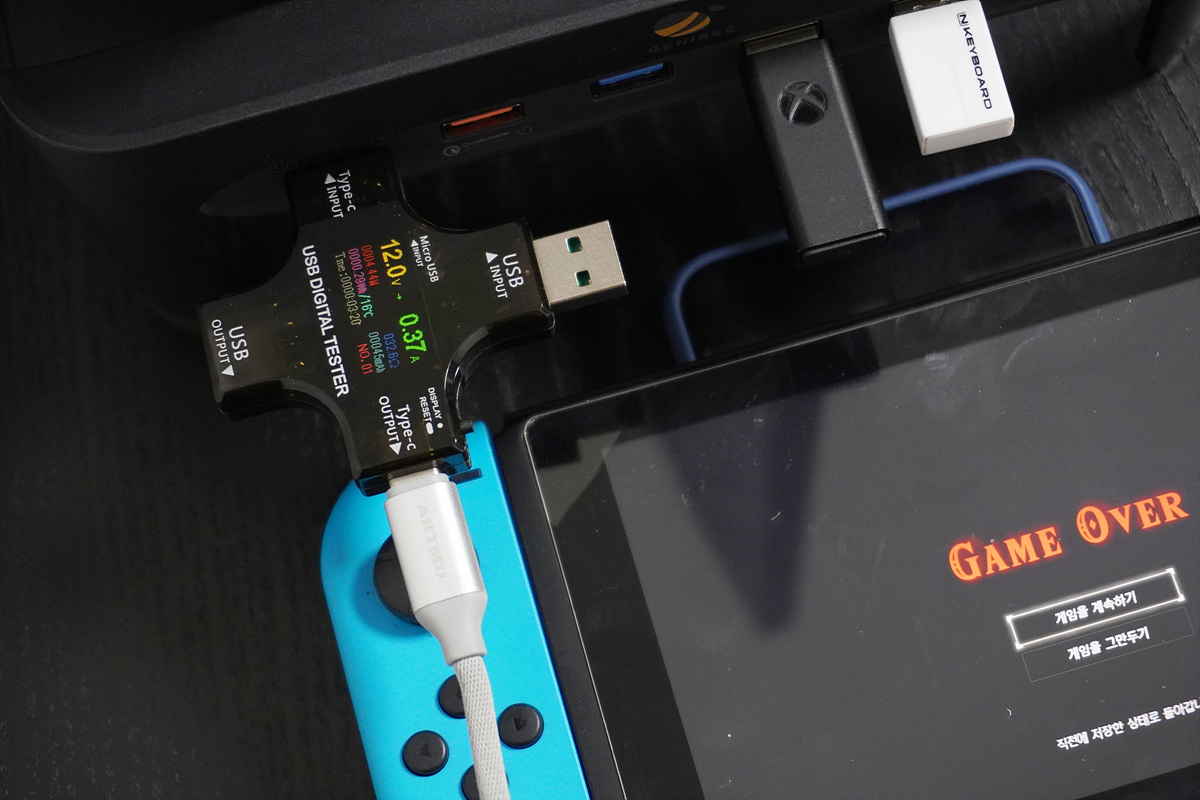 키보드/마우스용 무선 수신기, XBOX 무선 수신기등을 편리하게 사용할 수 있습니다. 개인적으로 오른쪽보다는 이렇게 왼쪽으로 사용하는게 걸리적거리지 않아서 더 좋았습니다.