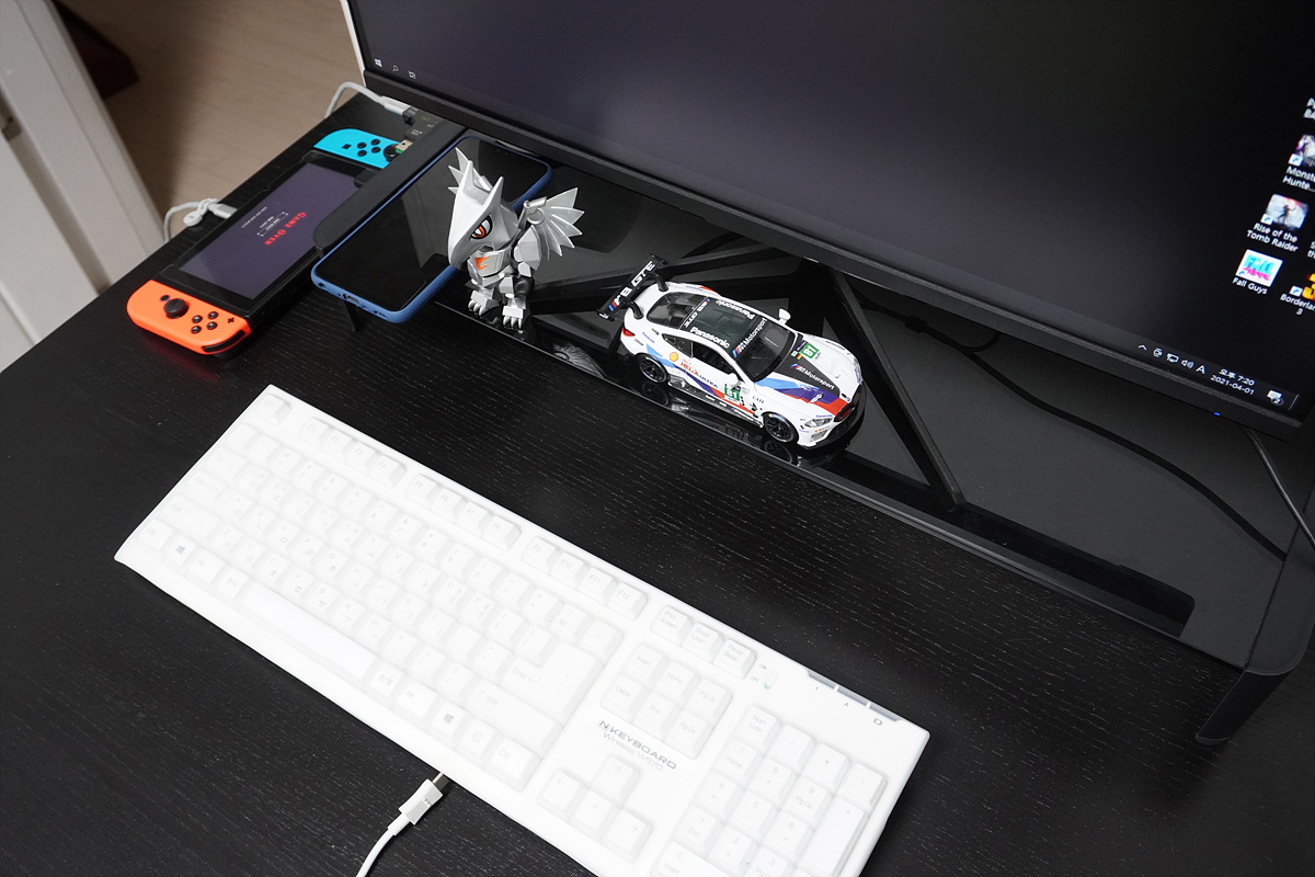 스탠드 아래로는 풀배열 크기의 키보드와 마우스를 보관할 수 있습니다.