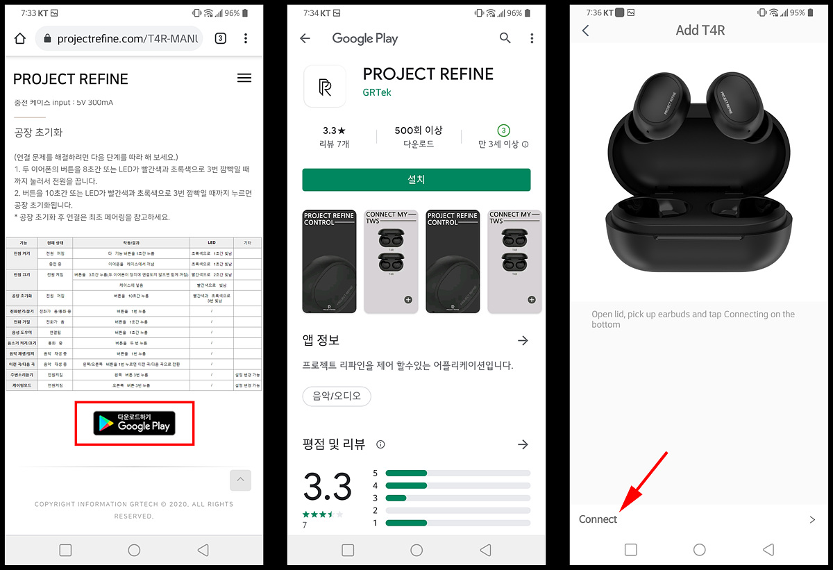 온라인 설명서에는 전용 앱을 다운받을 수 있는 링크가 연결되어 있습니다. 구글 앱스토어에서 Project Refine으로 검색을 해도 앱을 설치할 수 있습니다. 현재는 안드로이드만 지원하지만 IOS는 연말쯤 지원 예정이라고 합니다. T4R 이어폰의 가격은 현재 네이버를 기준으로 39,000원입니다. 이가격에서 전용 앱을 지원한다는건 상당히 칭찬을 해주고 싶습니다.