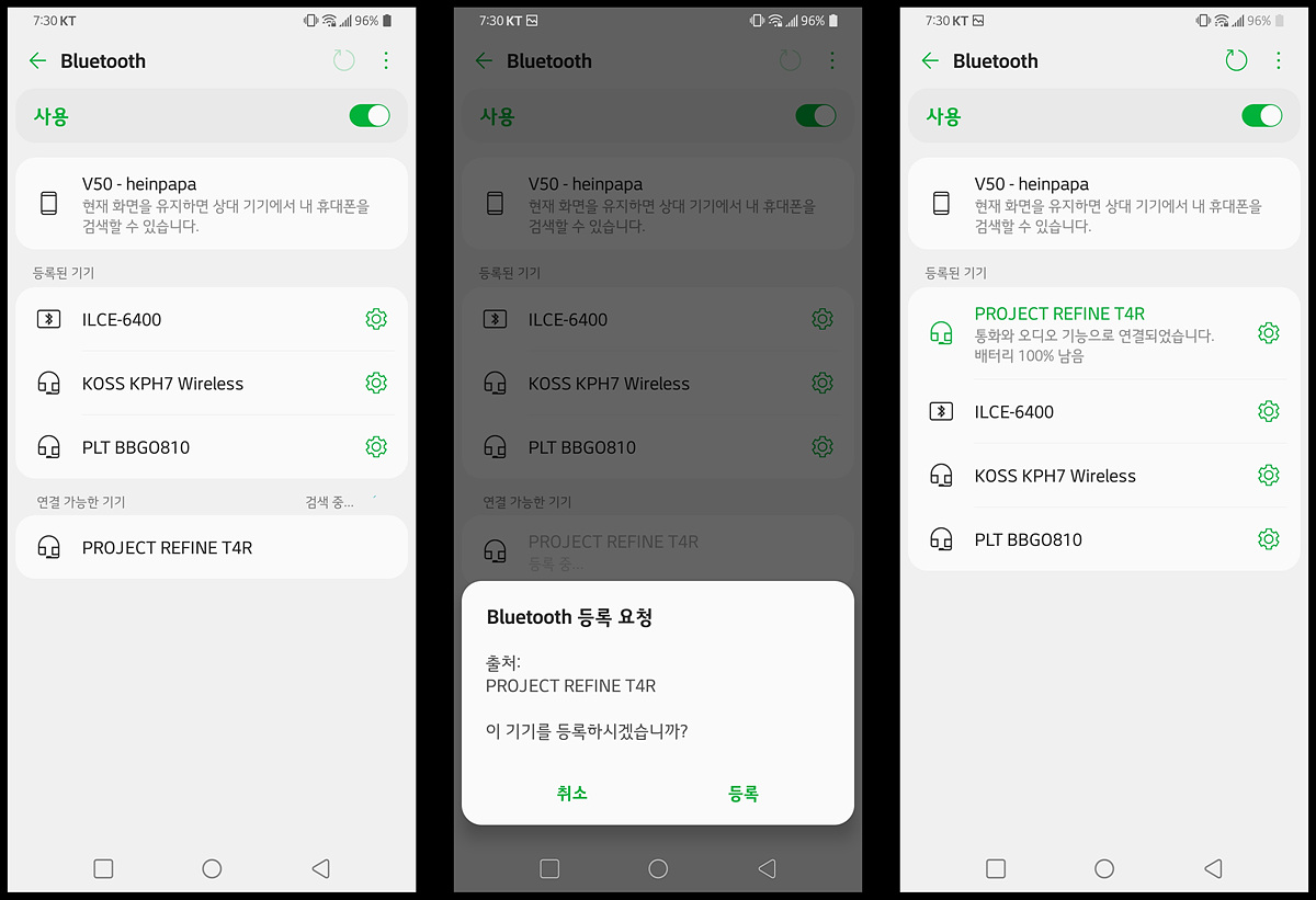 페어링 과정은 다른 블루투스 기기들과 같은 방식으로 이루어집니다.
