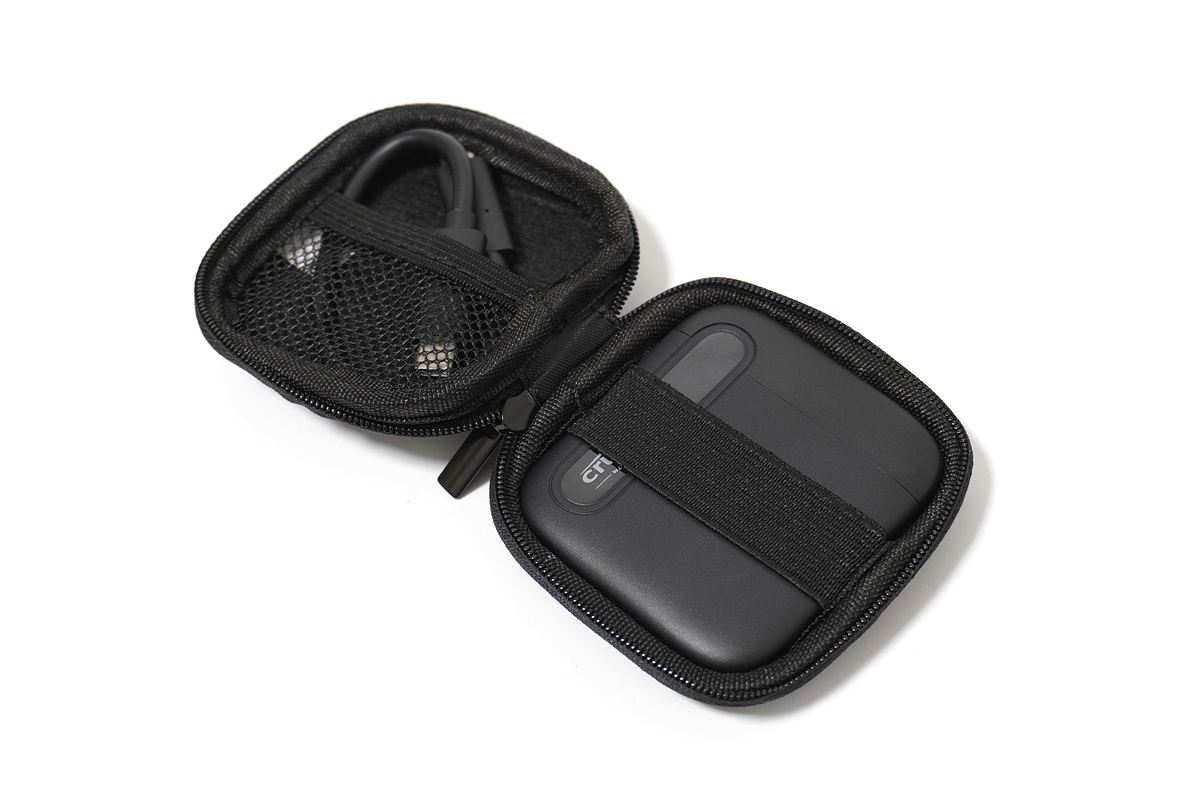 스펙을 정리할때는 몰랐는데 실제 제품을 받아보니 전용 케이스가 포함이였습니다. 외장 저장장치를 리뷰할때마다 언급했는데 외장 HDD, SSD에서 이런 케이스(파우치)는 필수라고 생각합니다. 예전에는 제품을 구입하면 기본으로 제공을 했는데 언젠가부터 케이스가 빠지더군요. 케이스는 저장장치의 안정성뿐 아니라 USB 케이블이 필요한 기기의 특성상 필수라고 생각합니다.