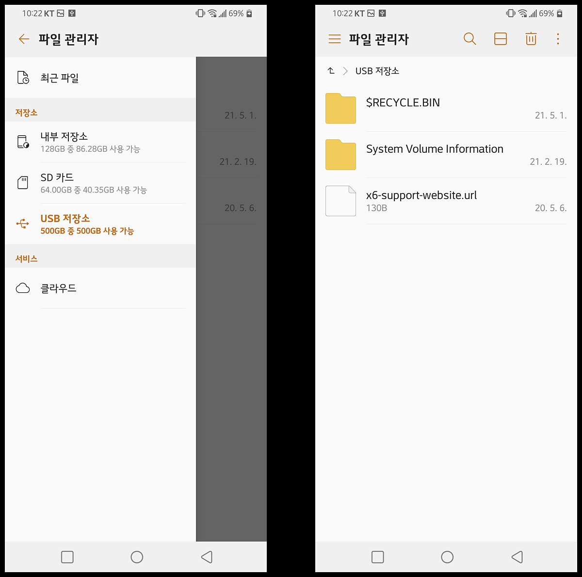 케이블만 스마트폰에 연결하면 별다른 설정이나 앱을 설치하지 않아도 바로 인식하게 됩니다.