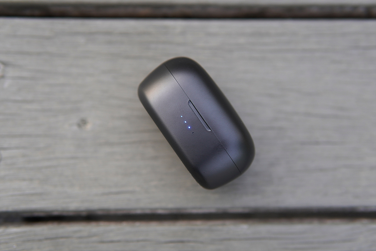 충전용 케이스는 상당히 작은 크기로 바지 주머니에 넣고 다녀도 부담이 되지 않았습니다. 사용자마다 중요하게 생각하는 부분은 다르겠지만 출퇴근 이동시간이 길지 않은 저는 고용량 배터리가 들어있는 케이스보다 작은 크기의 케이스를 좋아합니다.