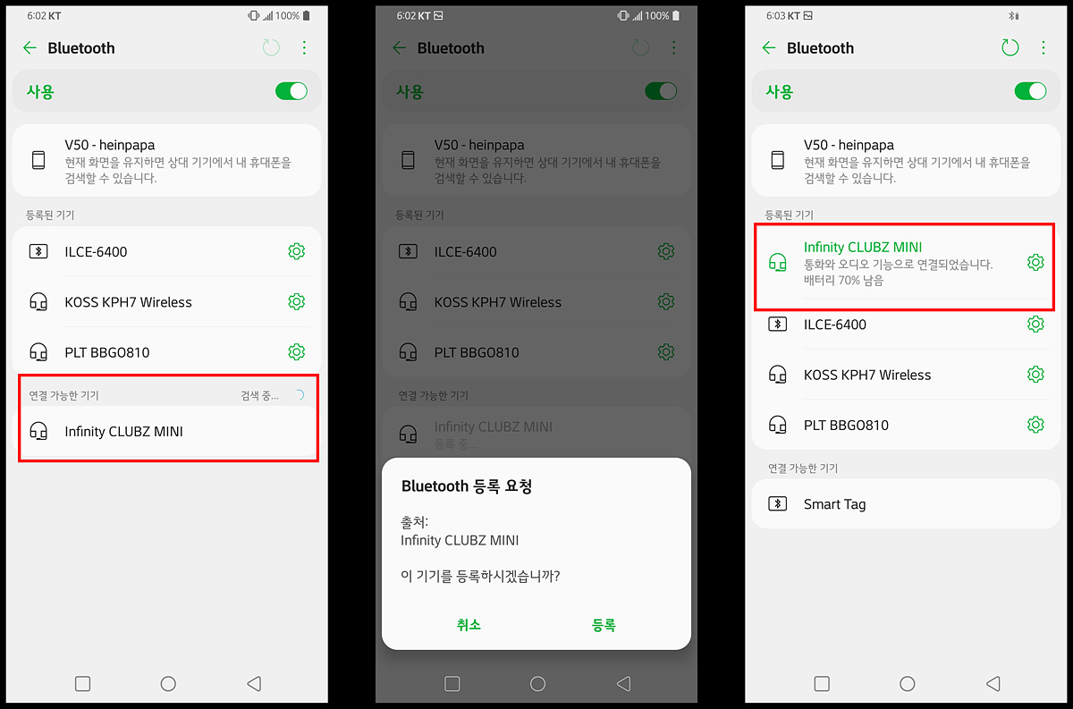 페어링 과정은 다른 기기들과 같은 방법으로 이루어집니다.