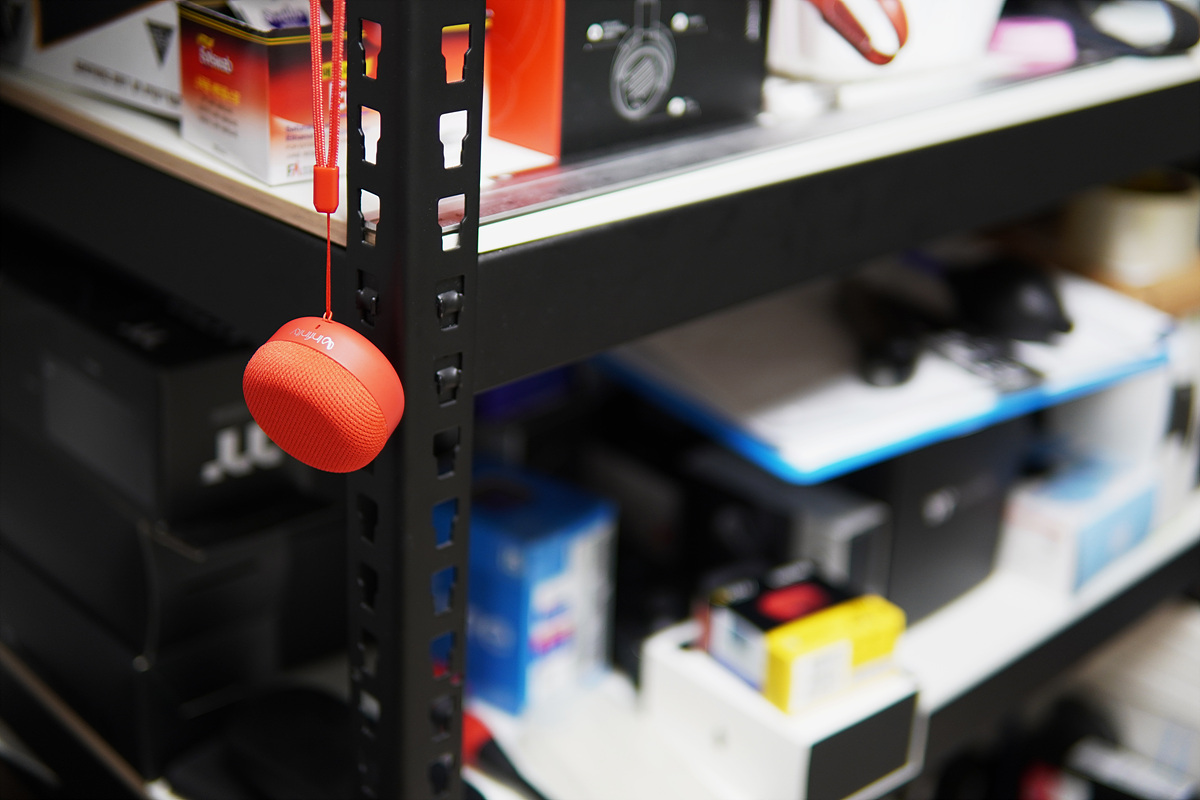 책상위나 선반등에도 올려놓을수도 있지만 스트랩이 있어서 이렇게 걸어서 보관할 수도 있습니다. 물론 음악을 들을때도 이렇게 걸어서 사용할 수 있습니다. 기존에는 사용하던 블루투스 스피커는 바닥에 놓거나 선반에 올려놨는데 왔다갔다 하거나 선반에서 물건을 꺼내다보면 걸리적거리기도 하고 바닥으로 떨어뜨릴때가 있었는데 이렇게 걸어서 사용하니 정말 세상 편하더군요.