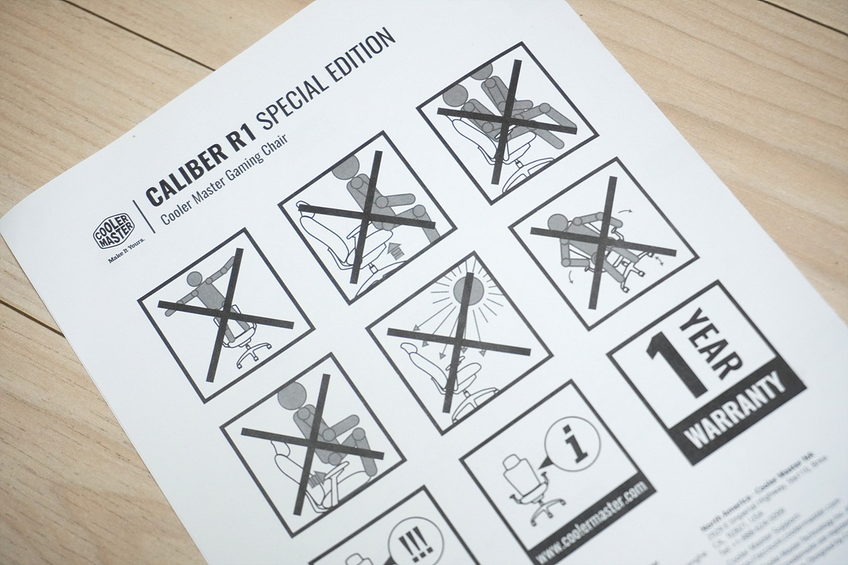 실제로 저렇게 하는 사람들이 있으니 제발 좀 하지 말라는 경고 문구가 있겠죠? 안전상 위험하니 절대로 저런 행동은 하지 마시기 바랍니다. 의자는 1년동안 대양케이스에서 고객지원을 받을 수 있습니다.