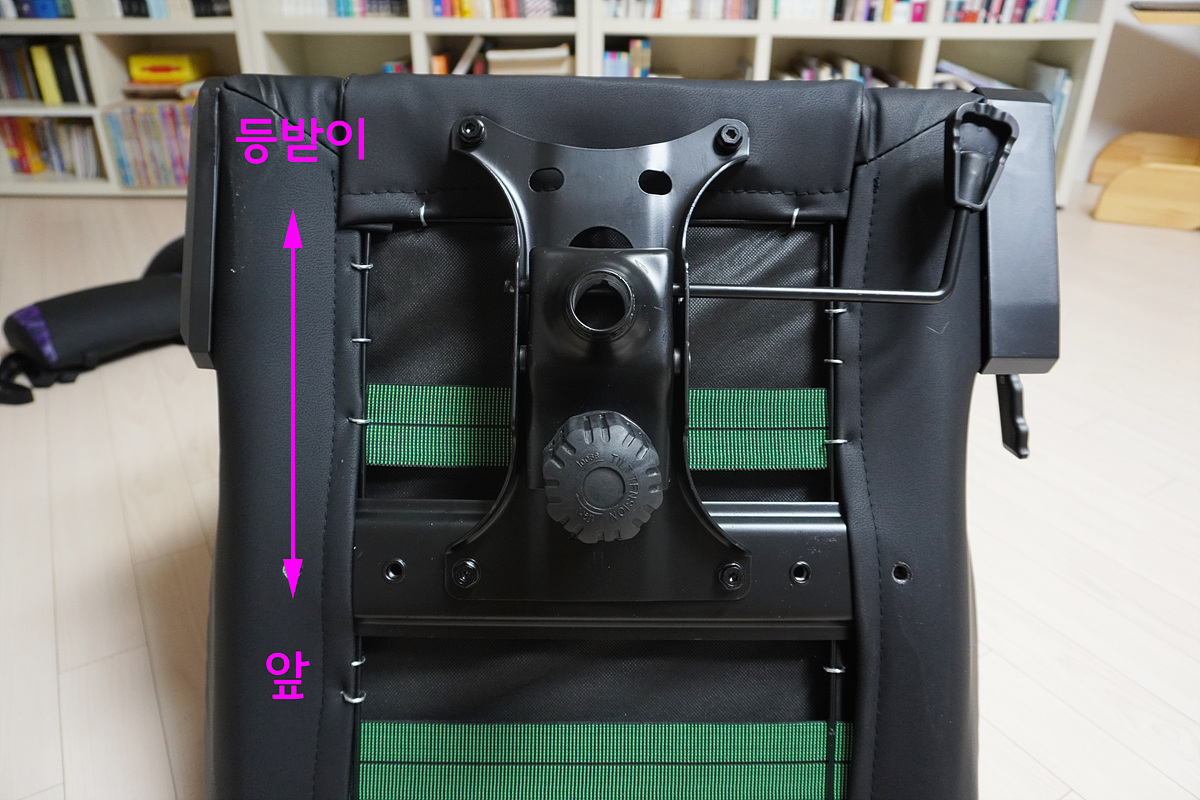 저는 등받이 쿠션이 없는게 편했지만 실제 사용하는 아들 녀석은 오히려 있는게 더 편하다고 하네요. 저는 90로로 완전히 세워서 사용하는 스타일이고 아들은 한단계정도 뒤로 눕혀서 사용을 합니다. 헤드 쿠션에 비해 등받이 쿠션은 좀 더 단단한 편이지만 다른 쿠션들에 비한다면 많이 단단하거나 크기 역시 그리 크지는 않았습니다.