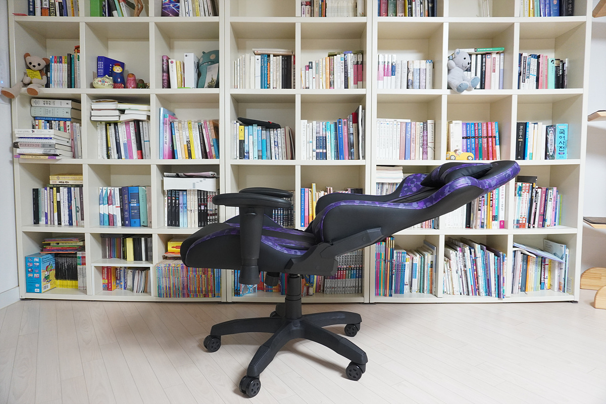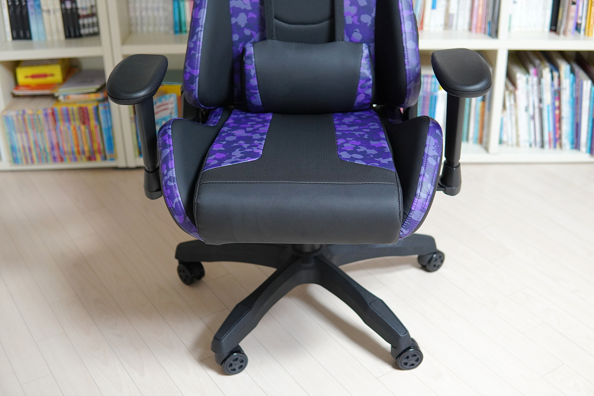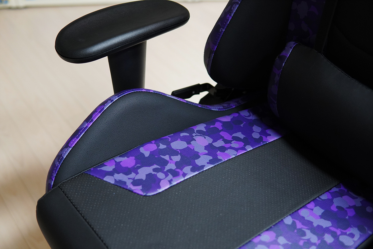 가격부분에 있어서도 다른 브랜드에 비해 조금 더 비싸게 책정이 되어서 이 부분 역시 아쉽게 느껴졌습니다. 현재 게이밍 체어로 유명한 브랜드의 비슷한 제품과 비교해도 약 7~10만원정도 더 비싼 가격이라 과연 경쟁력이 있을까? 라는 생각마저 들더군요. 카모플라쥬 디자인과 색은 다른 브랜드와 확실하게 구별이 되는 특징이지만 이부분이 대중적이라는 생각은 들지 않았습니다. 저도 보라색은 좋아하는 편이지만 이런 패턴은 너무 매니악한 스타일이였습니다.