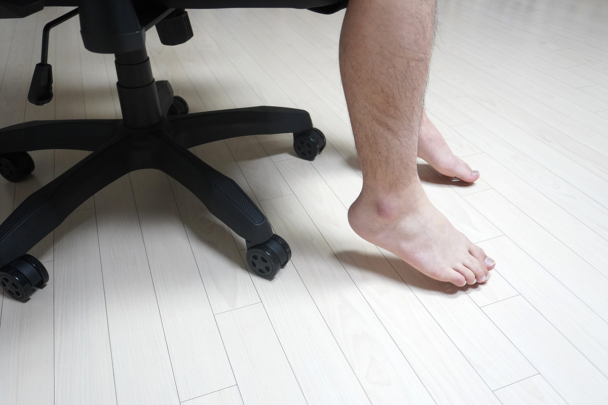 의자의 양쪽 끝으로 시트를 감싸듯이 조금씩 튀어나온 부분이 있었지만 좌판의 크기가 넉넉해서 다리를 양쪽 모두 올려서 앉아도 불편하지는 않았습니다. 아마도 집에서는 대부분 한쪽이냐 양쪽 다리를 올려서 사용할거라 생각합니다.
