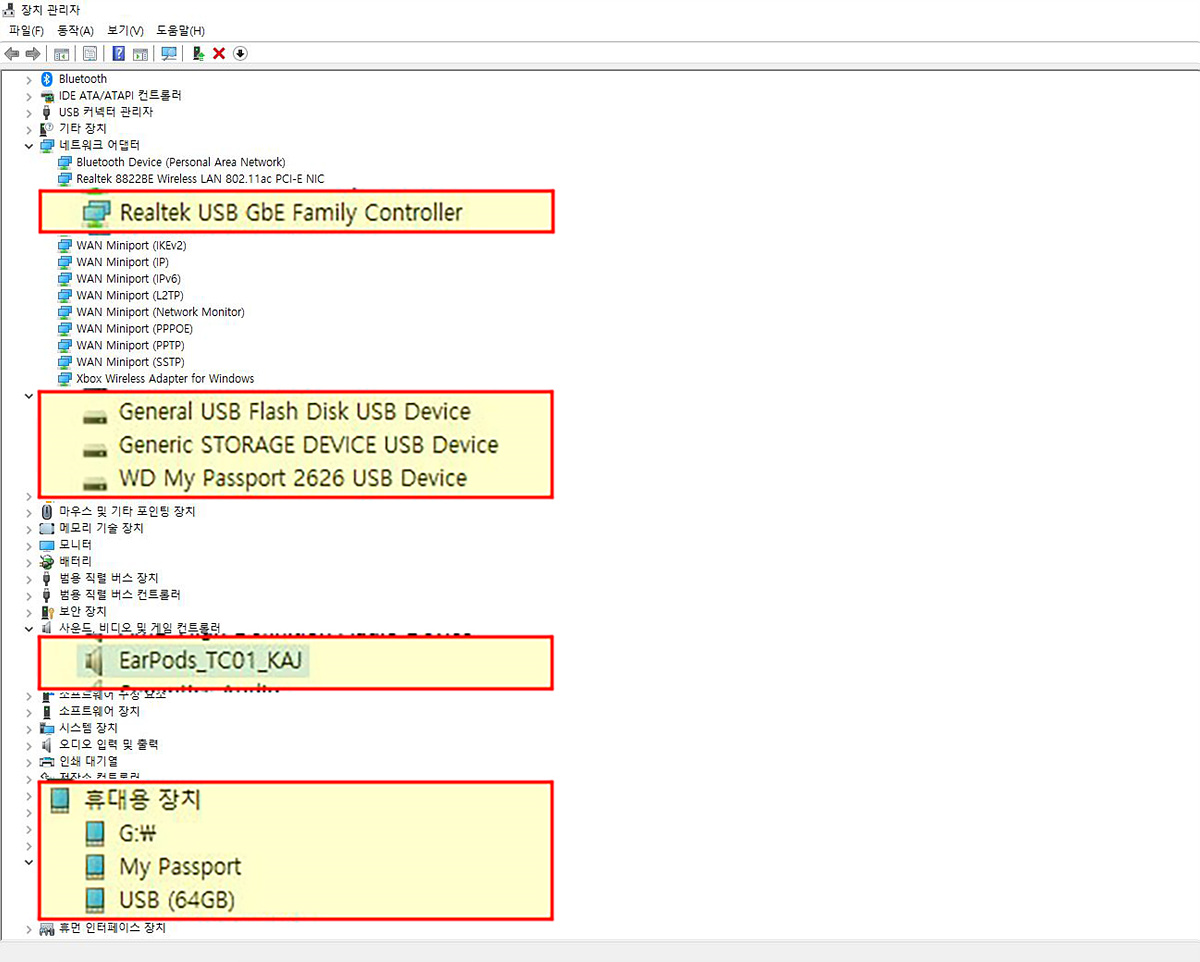 네트워크, 사운드, 저장장치들까지 모드 인식이 됩니다.