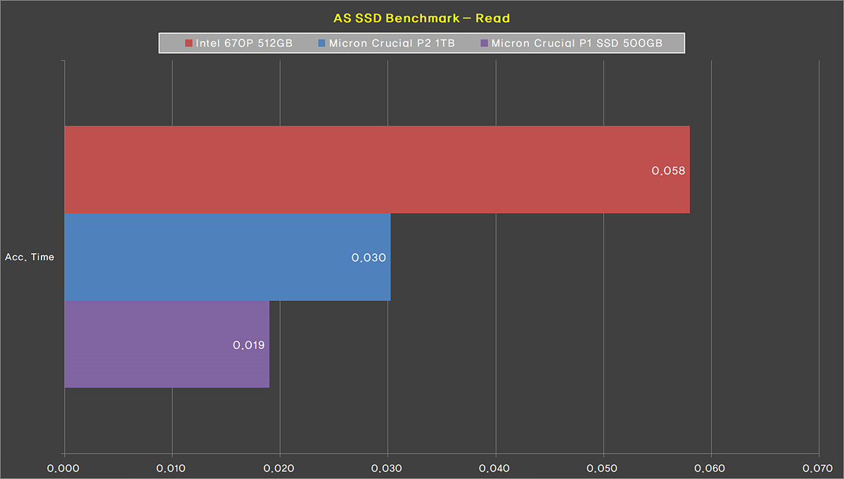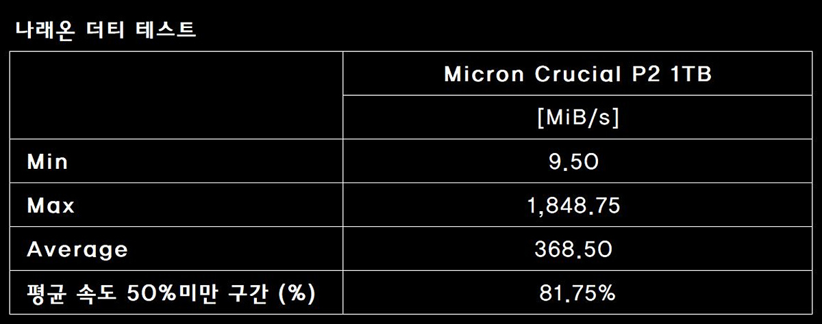 마이크론 제품들과 비교한다면 확실히 Read Acc. Time은 약한 모습이였습니다.