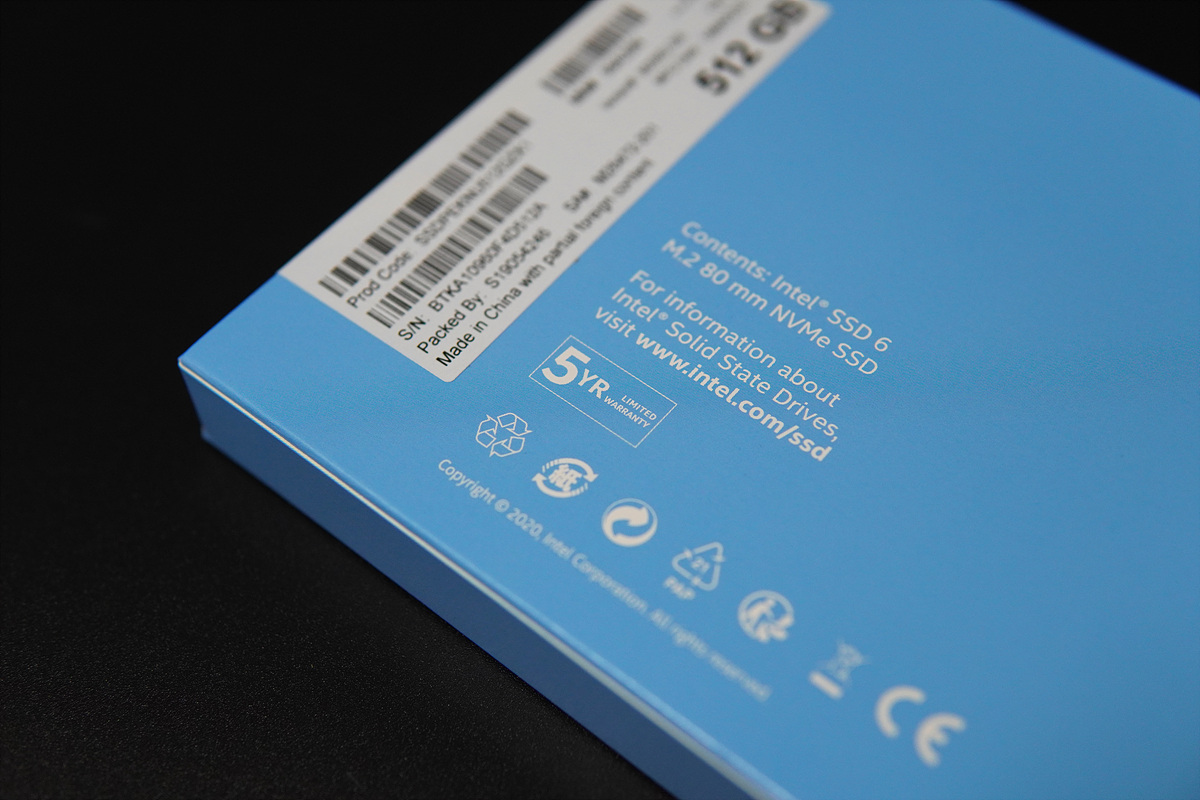 5년 보증을 안내하는 문구가 있습니다. 일부 QLC 제품들 3년의 as를 보증하는것과 비교한다면 반가운 소식입니다. 인텔 SSD의 공식 유통과 고객지원은 피씨디렉트에서 담당을 하고 있습니다. 다른 제품들처럼 스티커를 잘 보관하셔야 합니다. (전 스티커가 빠진 상태로 받았다고 나중에 추가로 받았습니다.)