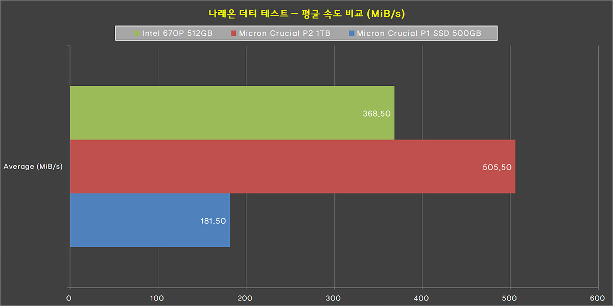 나래 테스트의 경우 인텔 670p만이 아닌 QLC NAND SSD의 특성입니다.