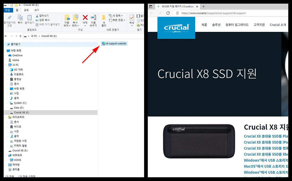 드라이브에는 웹 링크(URL) 파일이 있으며 Crucial의 제품 페이지로 연결됩니다.