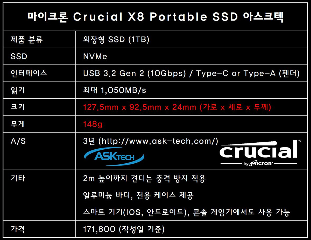 ■ 마이크론 Crucial X8 Portable SSD 아스크텍