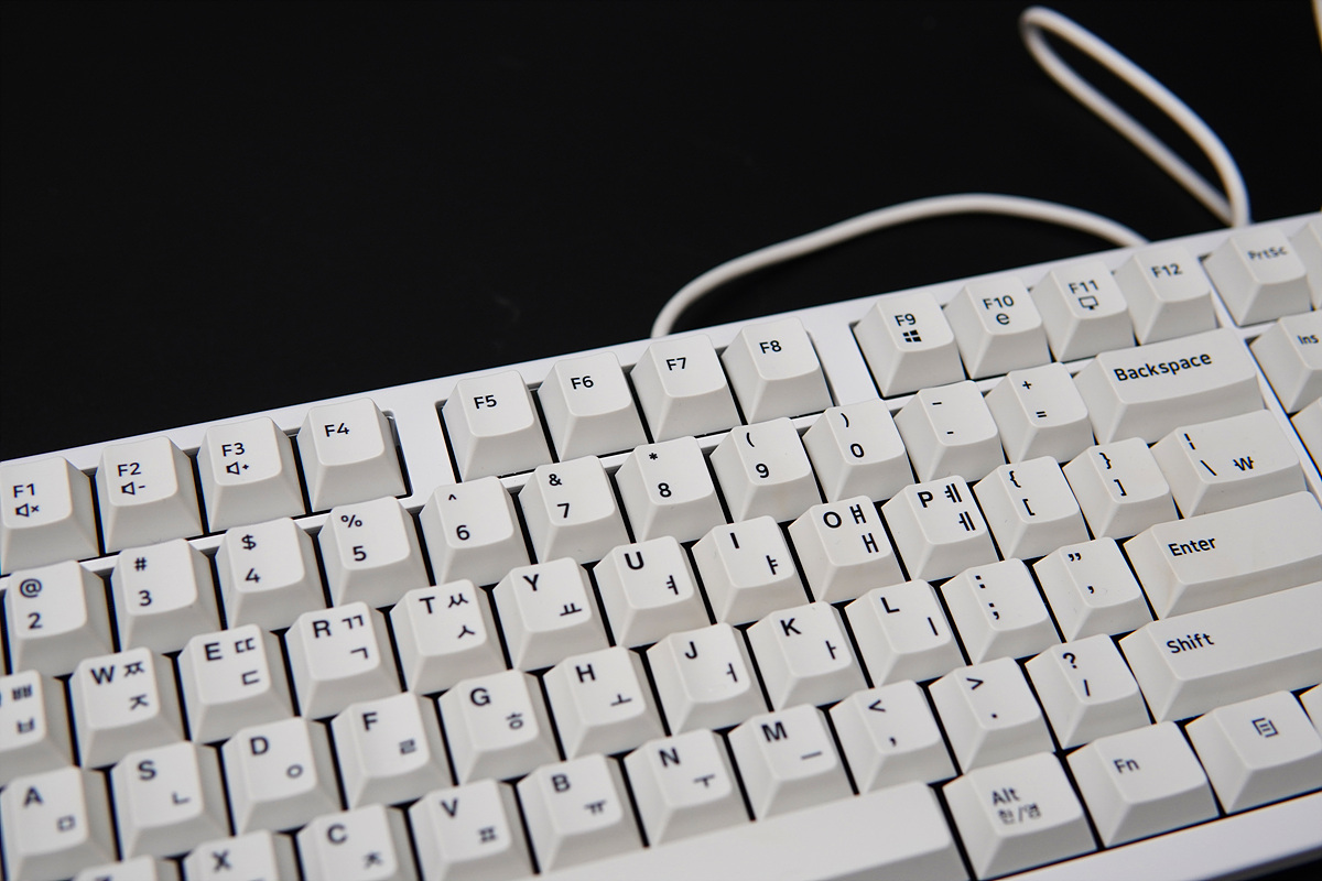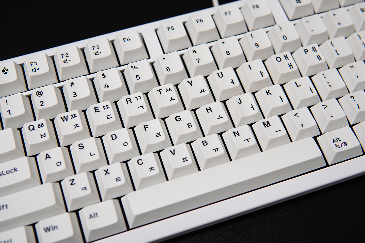 하우징과 키캡의 화이트는 약간 차이가 있습니다. 저는 키캡의 색도 그렇지만 확실하게 표시되는 폰트 역시 상당히 마음에 들었습니다. (약간은 레트로 감성도 느껴지더군요.)