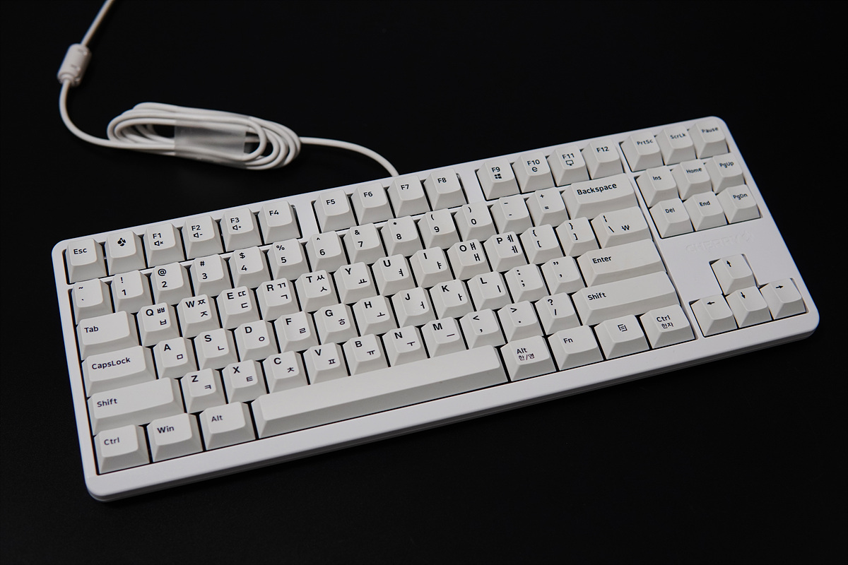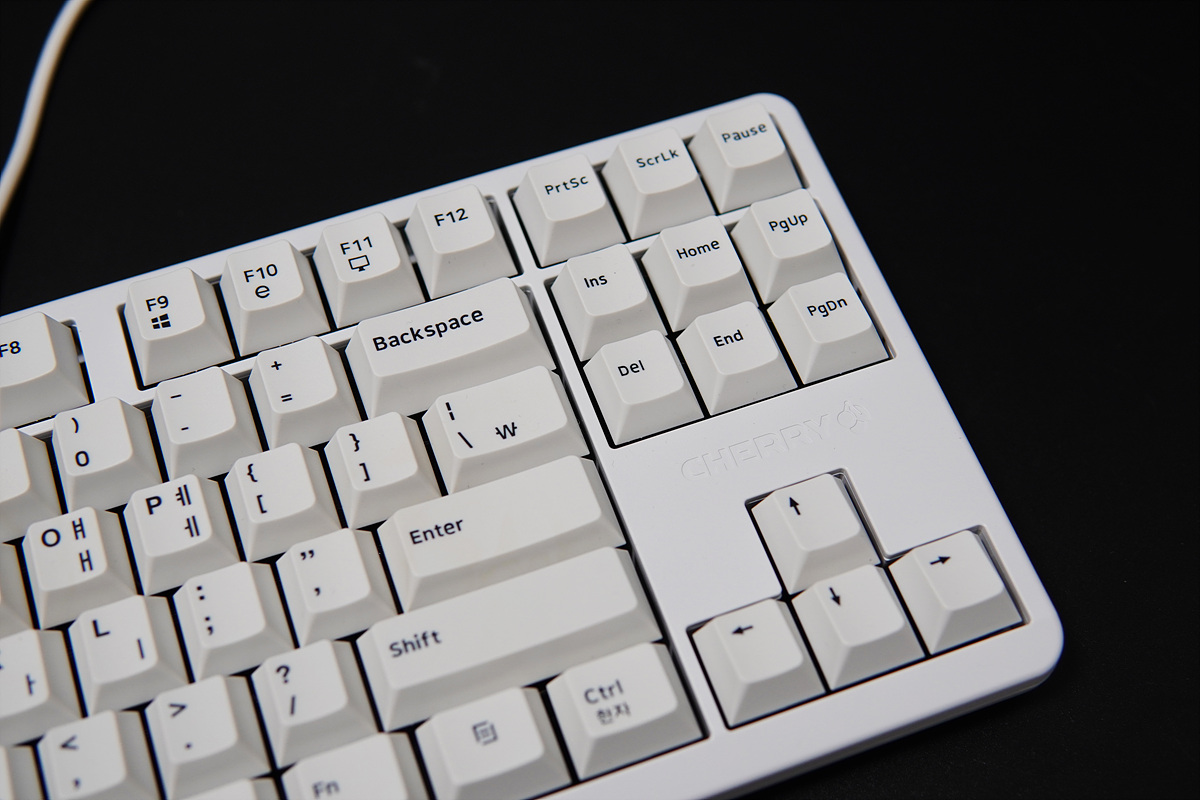 화이트 컨셉의 하우징과 키캡의 디자인이 정말 좋았습니다. 키보드가 다 비슷한 디자인이라 작은 차이로 인해서 느낌이 확 달라지는데 G80-3000S TKL는 블랙보다 화이트를 훨씬 더 예쁘더군요. 화이트로 사세요. 두번 사세요~