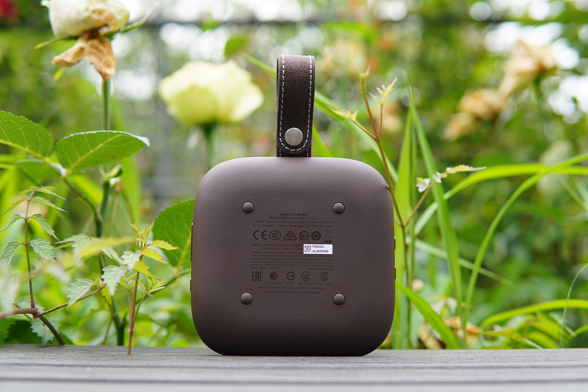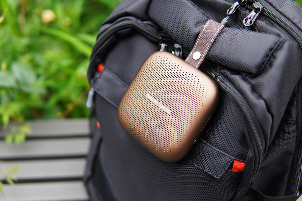 블루투스 스피커는 일반적인 Hi-Fi용 스피커와는 조금 다른 요소들로 선택을 하게 됩니다. 특히나 이 제품처럼 이동을 하면서 사용하려는 스피커에서는 크기와 무게도 중요한 부분이죠. 성인 손바닥정도의 크기와 250g대의 무게는 야외 활동에서 크게 부담이 되지는 않을거라 생각합니다. 등산용 가방이나 자전거 프레임, 나무, 펜스, 텐트와 같은 다양한 장소에 걸어 사용할 수 있는 똑닥이 단추 스타일의 스트랩은 다양한 야외 활동에 잘 맞았습니다.