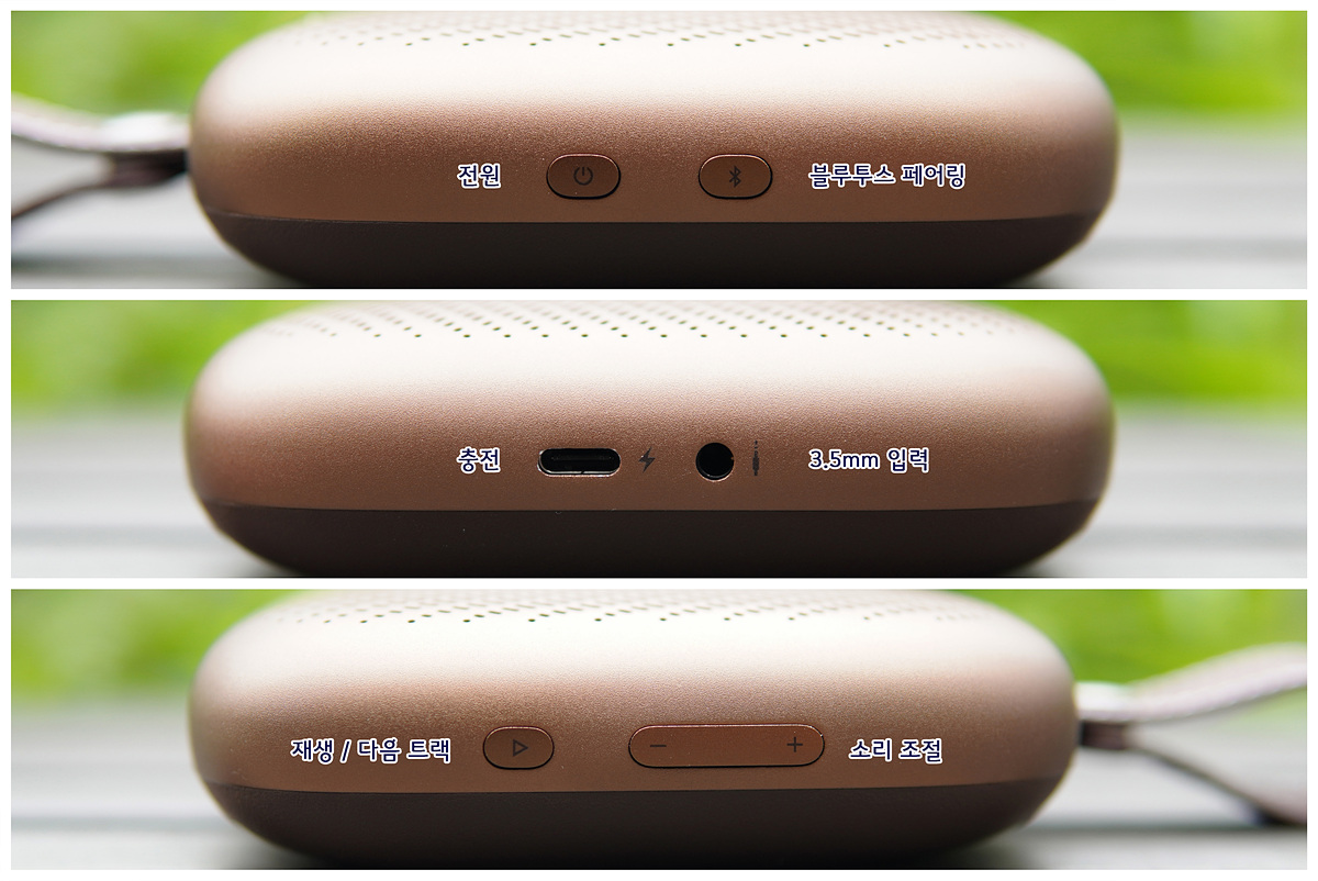 스트랩 아랫쪽으로는 LED가 있어서 스피커의 상태를 확인할 수 있지만 실제 사용을 해보니 이게 의미가 없더군요. LED의 크기가 너무 작습니다. 실내에서는 그나마 좀 보이지만 밖에서는 일부러 찾아야 보이는 수준이였습니다.