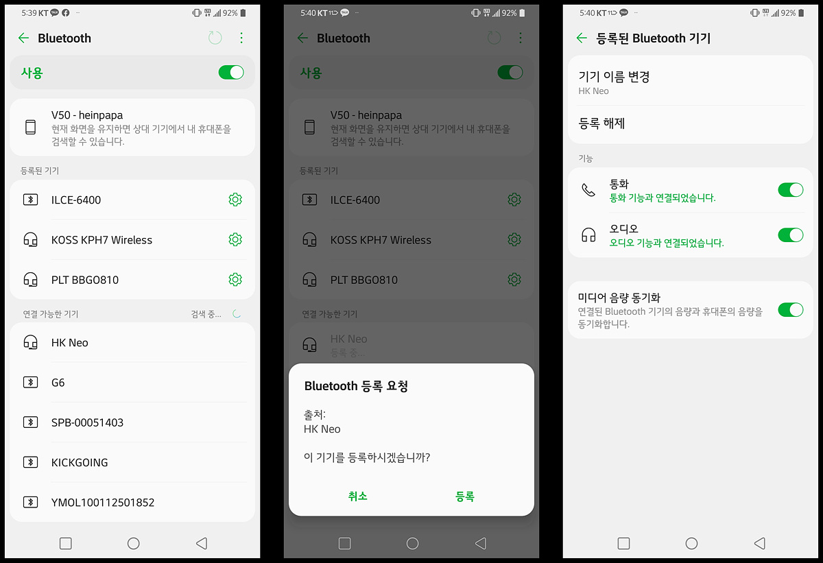 페어링 과정은 다른 기기들과 같은 방식으로 연결이 됩니다.