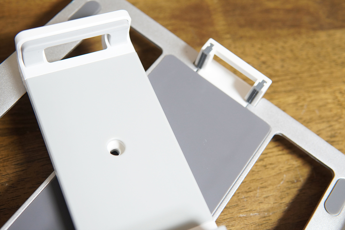 받침대나 거치할 수 있는 부품은 모두 알루미늄으로 되어있습니다. 알루미늄 디자인도 그렇지만 노트북과 같이 무거운 제품들을 고정하는 제품이다보니 플라스틱보다는 훨씬 더 듬직한 편이였습니다.