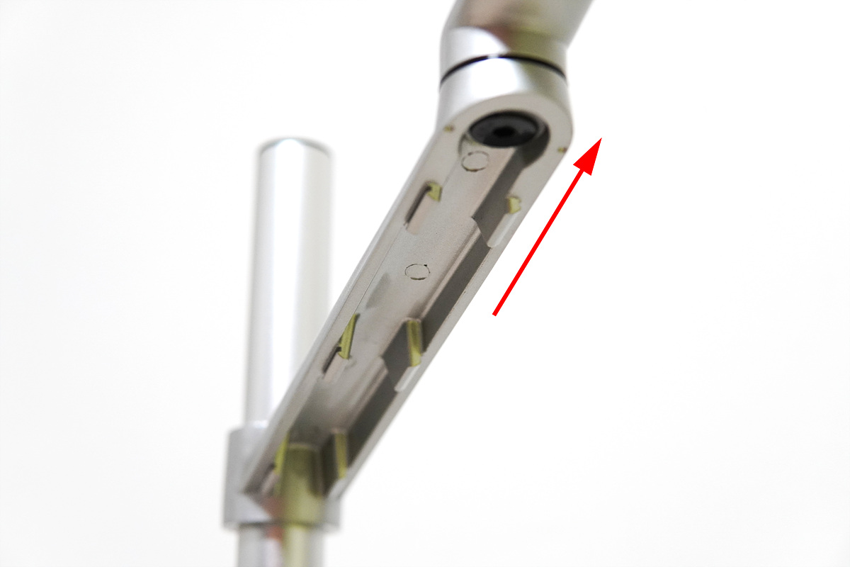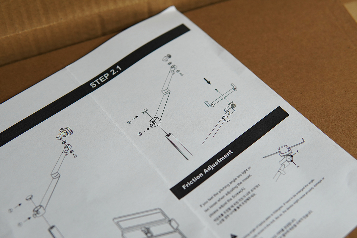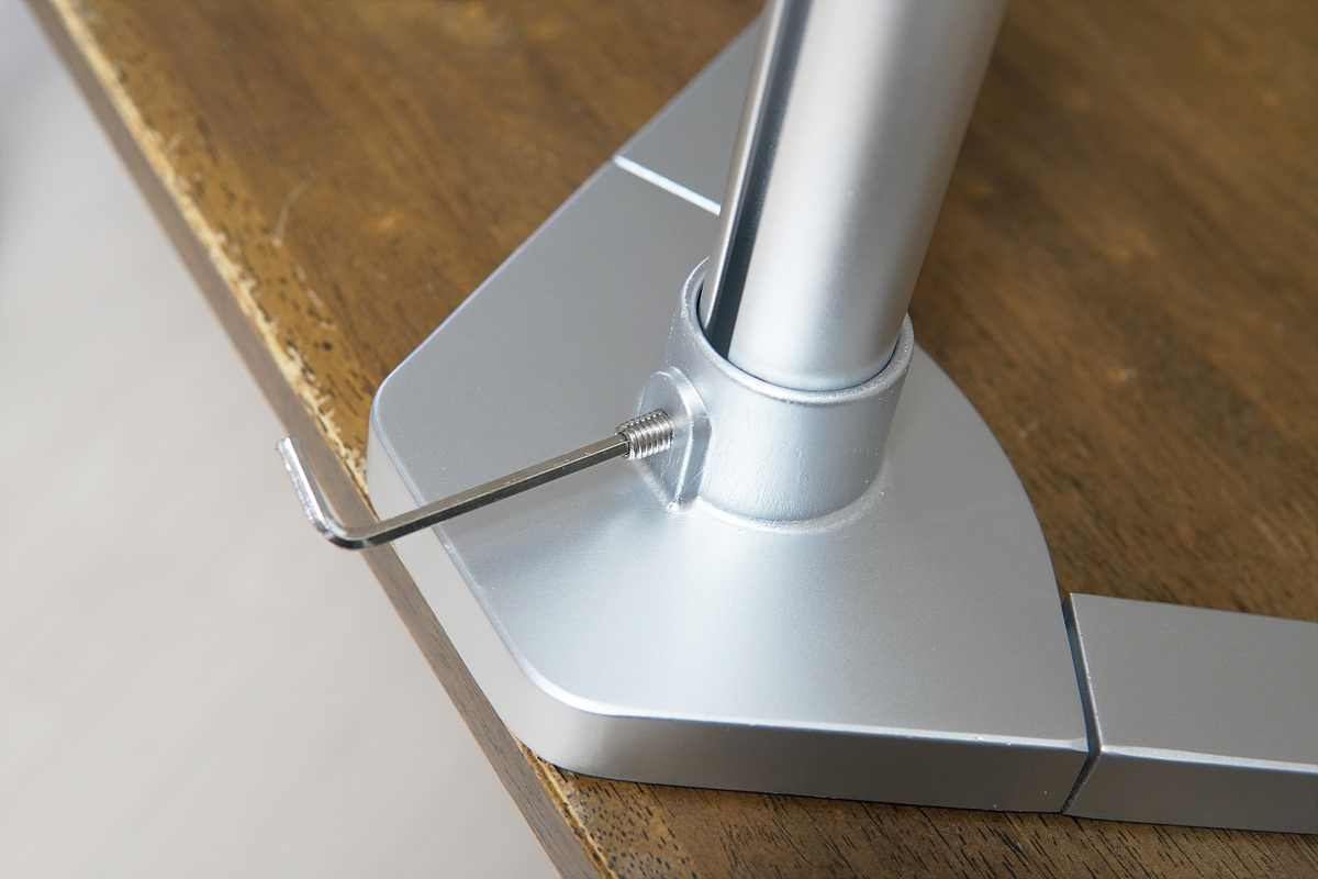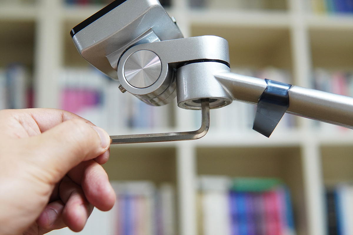 암(Arm)을 고정한 뒤 마찬가지로 구멍에 맞추어 고정을 할 수 있습니다. 손나사를 통해서 암(arm)을 고정할 수 있으며 홈을 통해서 전체적인 높이를 조절할 수 있습니다.
