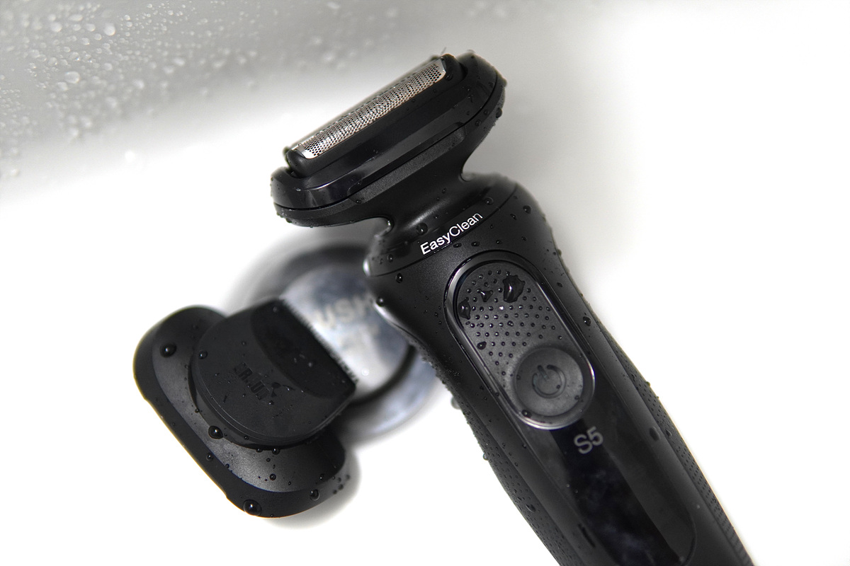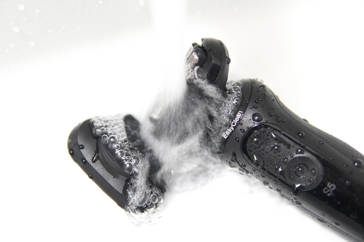 면도는 건식과 습식 모두 사용할 수 있으며 최대 5미터 완전방수이기 때문에 물 세척은 물론 쉐이빙 젤과 폼 사용 및 샤워중에도 사용할 수 있습니다.