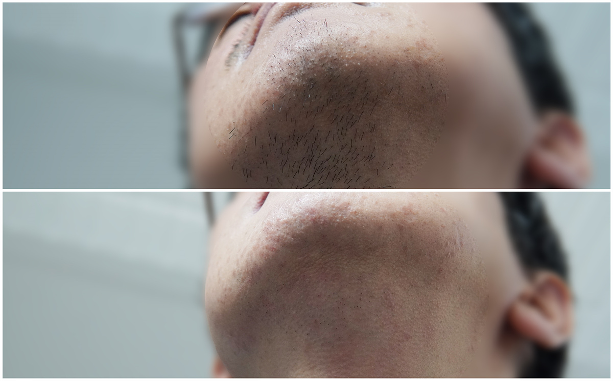 면도 전/후 비교 사진입니다. 이전에 사용하던 면도보다 더 부드럽고 편하게 사용할 수 있었습니다. 부드럽게 움직이면서 사용하면 굵은 수염도 잘 깍이더군요.